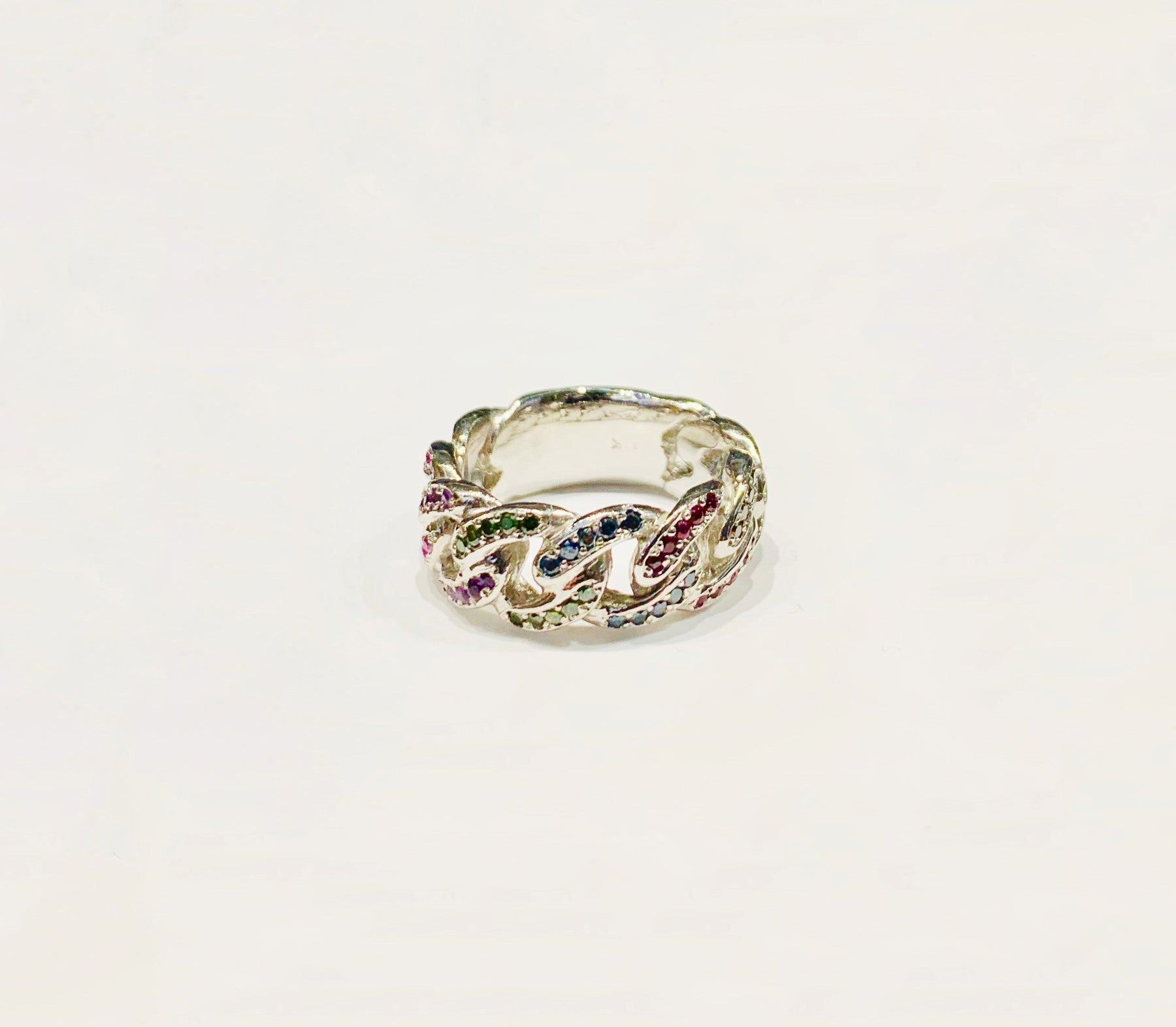 This is a multi-color Miami Cuban Ring with multicolors diamonds stones.