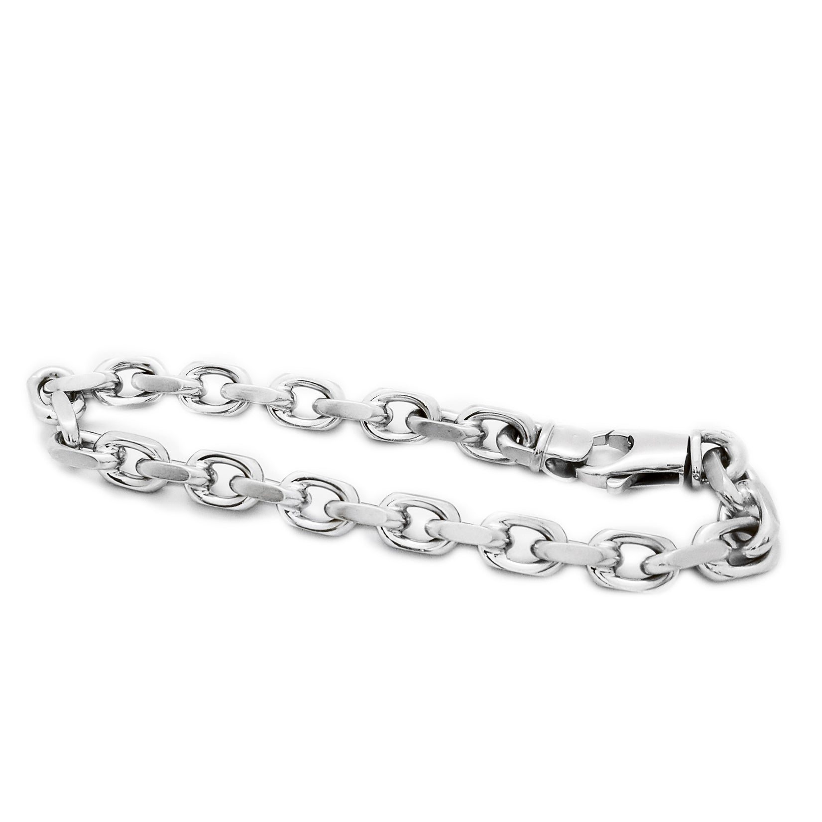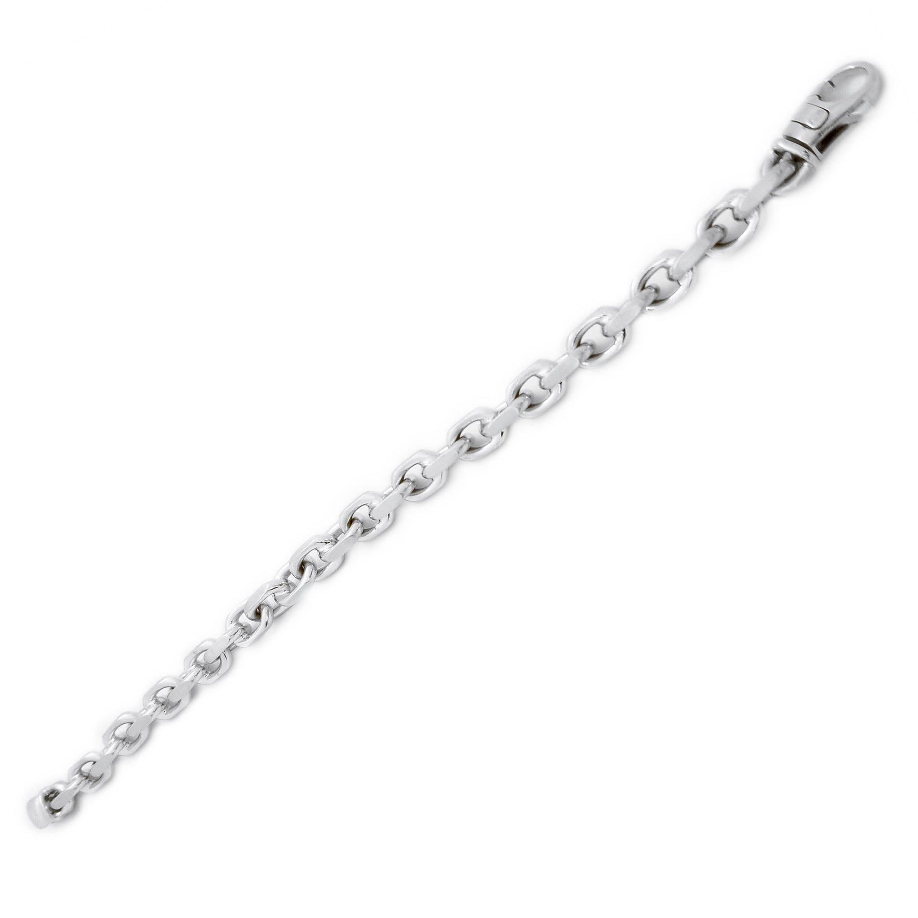 • Metal precioso: Oro blanco de 18 quilates • Piedra preciosa: Ninguna • Tamaño: - Longitud: 8,9 pulgadas - Altura: 7,33 mm - Espesor: mm - Peso: 51,5 gramos