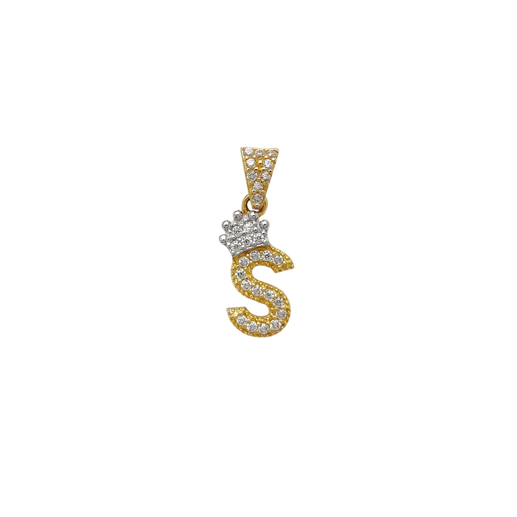 Colgante miniatura con inicial de corona helada (14 quilates)