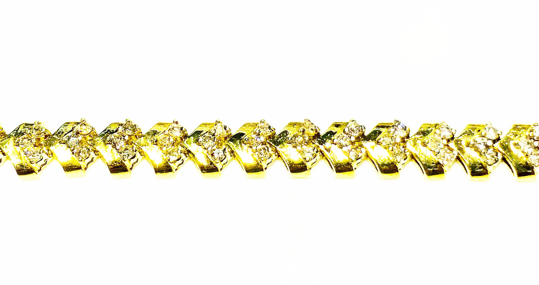 Muestre su amor a esa persona especial con esta fabulosa pulsera de tenis con diamantes engastados en eslabones franco que se asemejan a formas cuadradas de corazones.