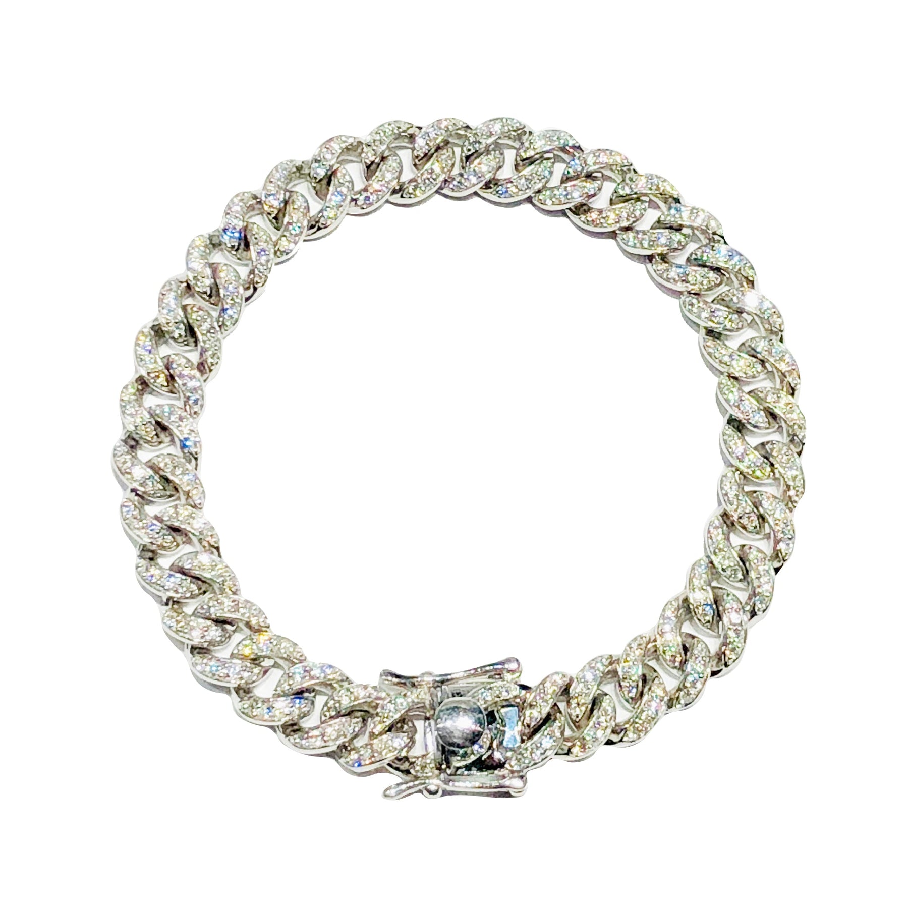 El primo frío e imperdonablemente ostentoso del brazalete de eslabones Miami-Cuba, decorado con diamantes de alta calidad. Llevar este extravagante brazalete es solo una de las muchas maneras ostentosas de presumir de riqueza y buen gusto.