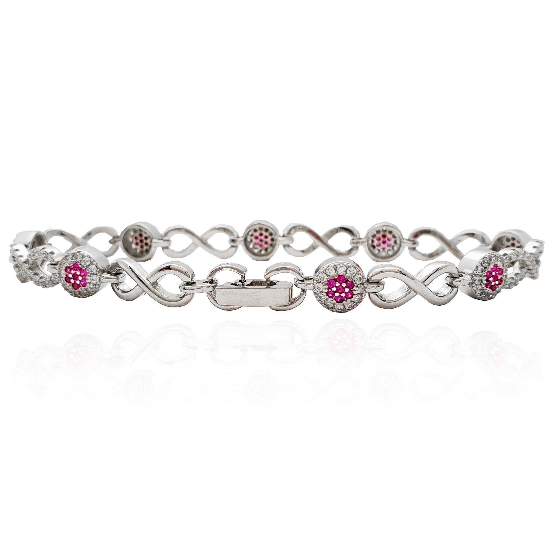 Pulsera de circonita cúbica con eslabones infinitos redondos (plata)