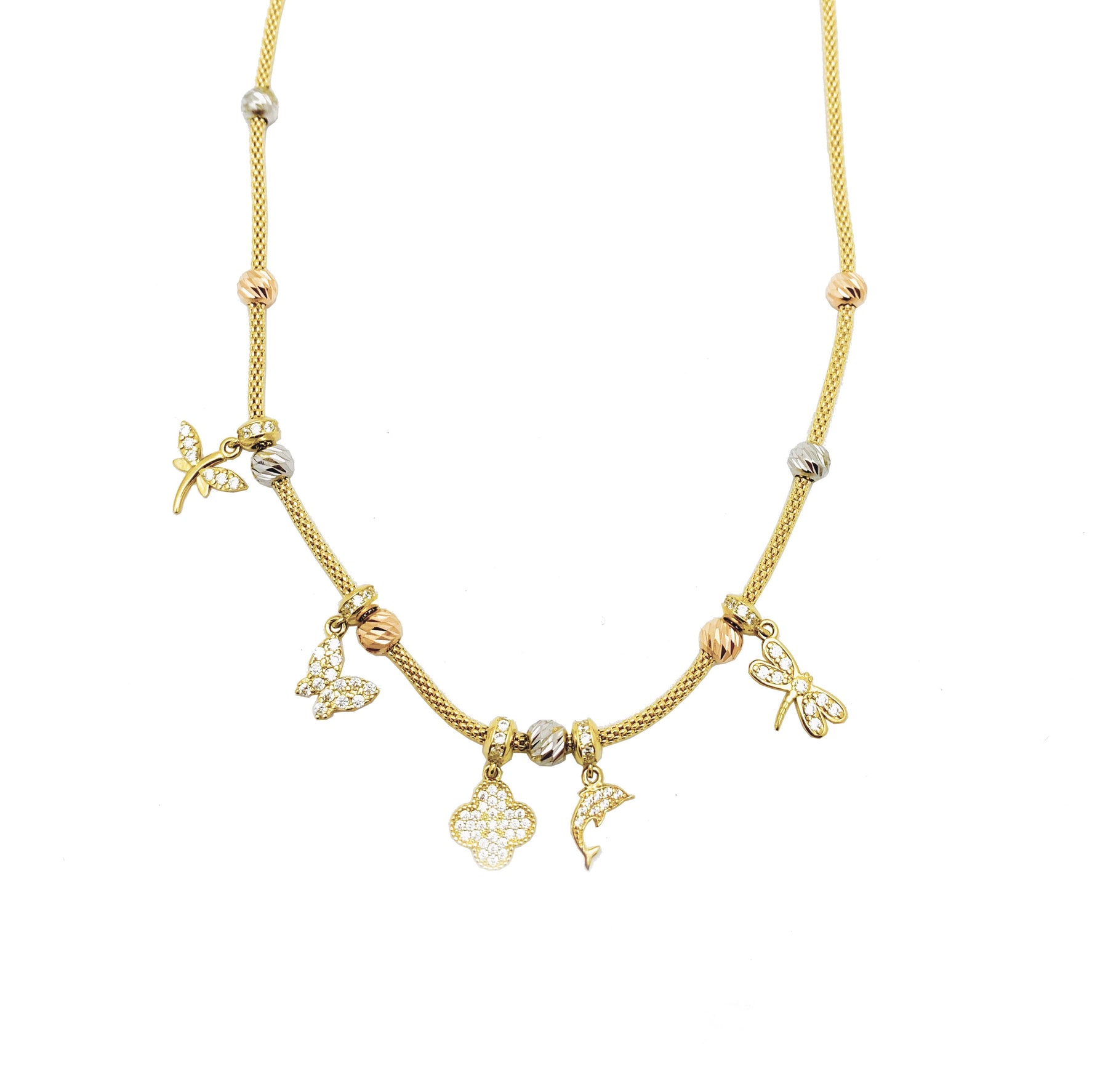 Collar con figuras tricolores CZ (14K).