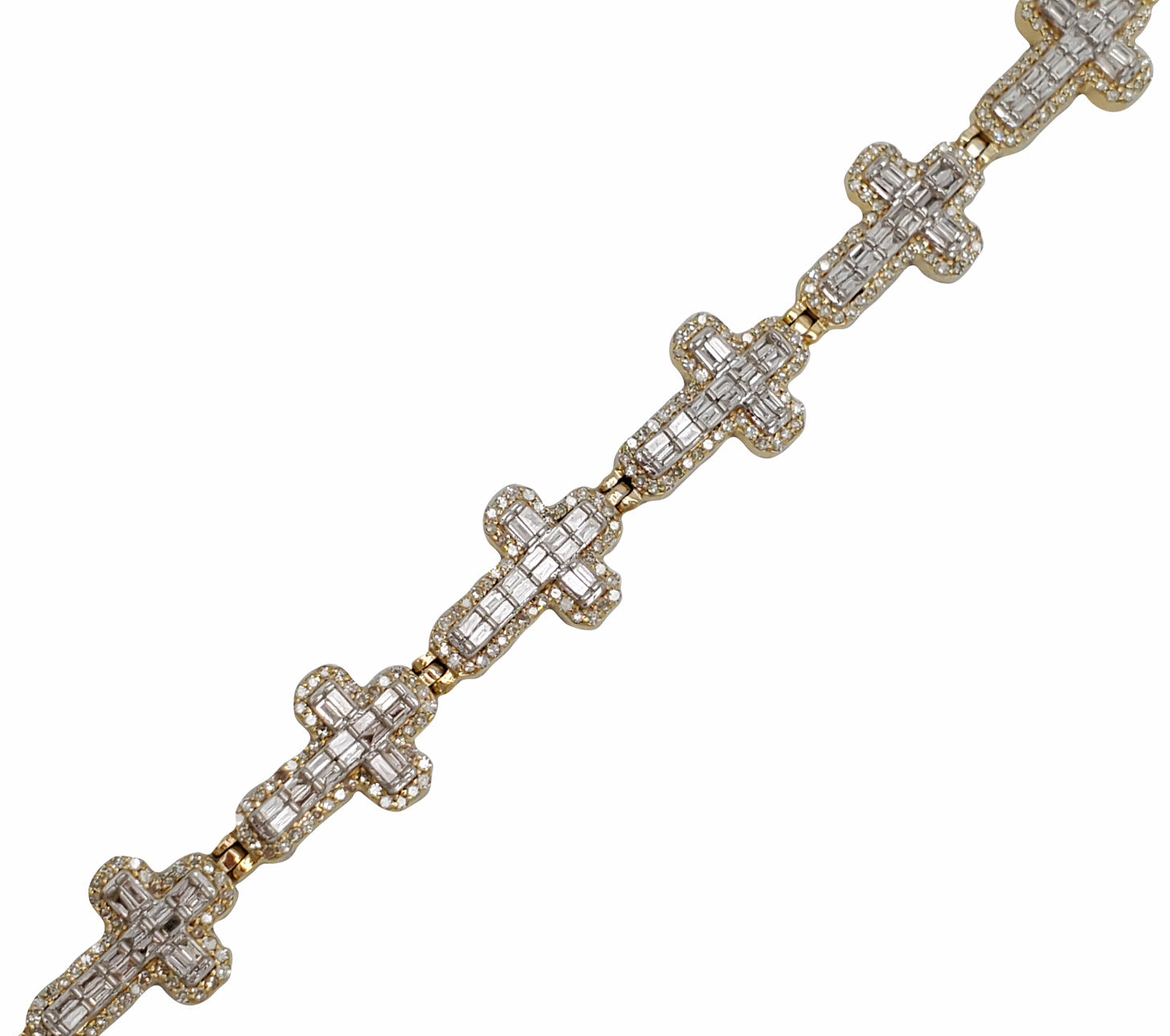 Diamond Two-Tone Baguette Cross Bracelet (14K).
