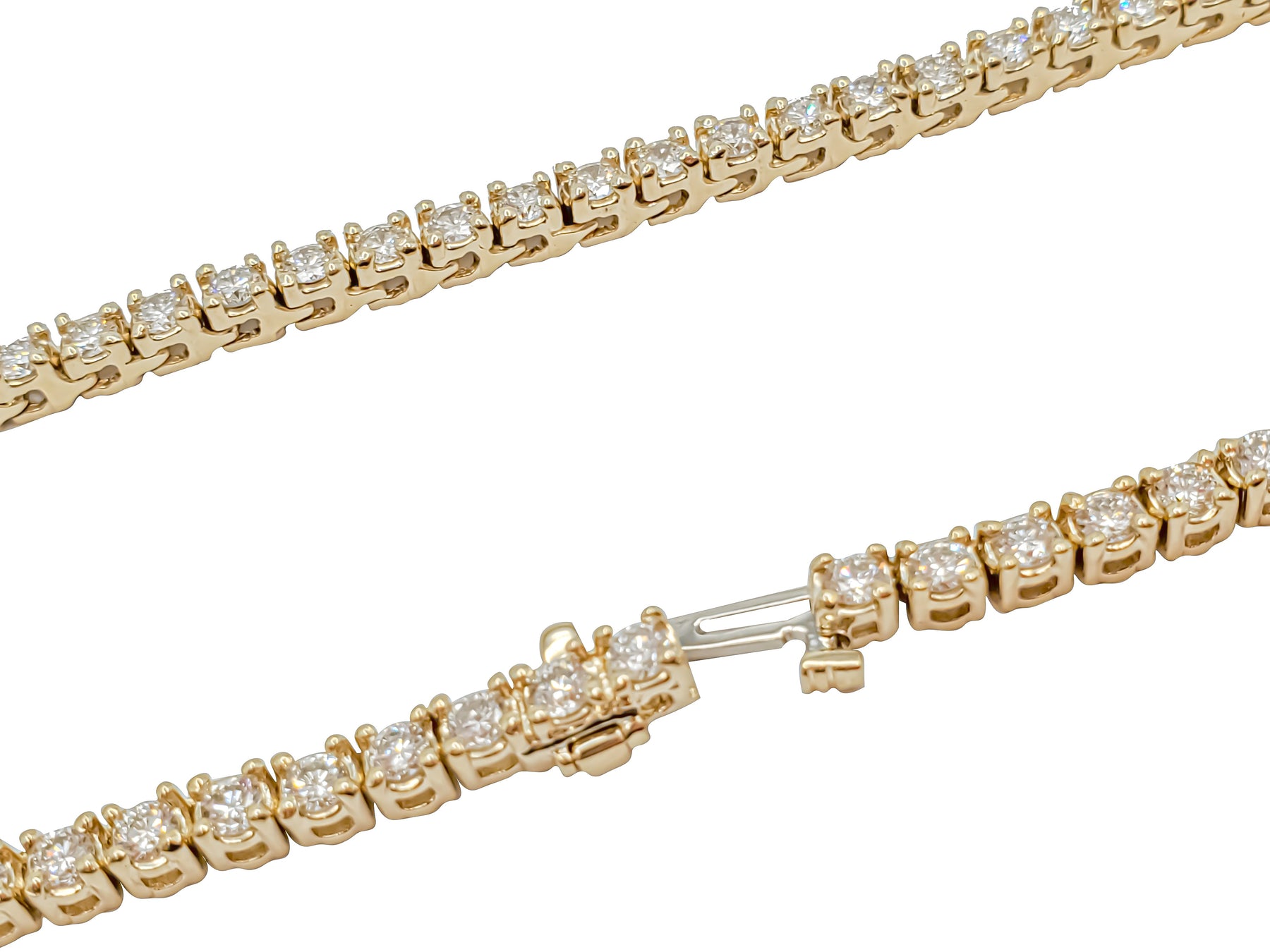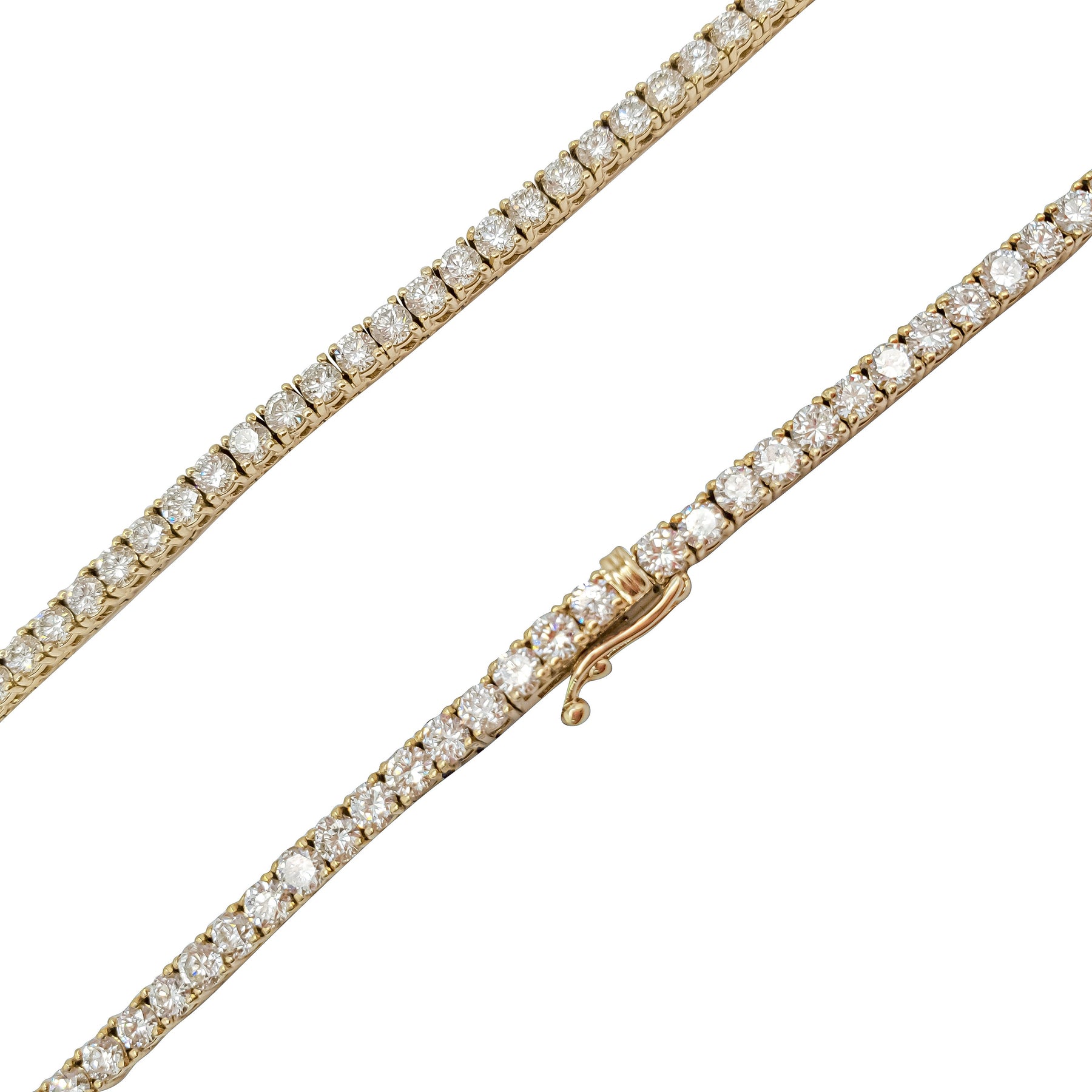 Tennis necklace made with outstanding diamonds set in 14 karats of high quality white gold.