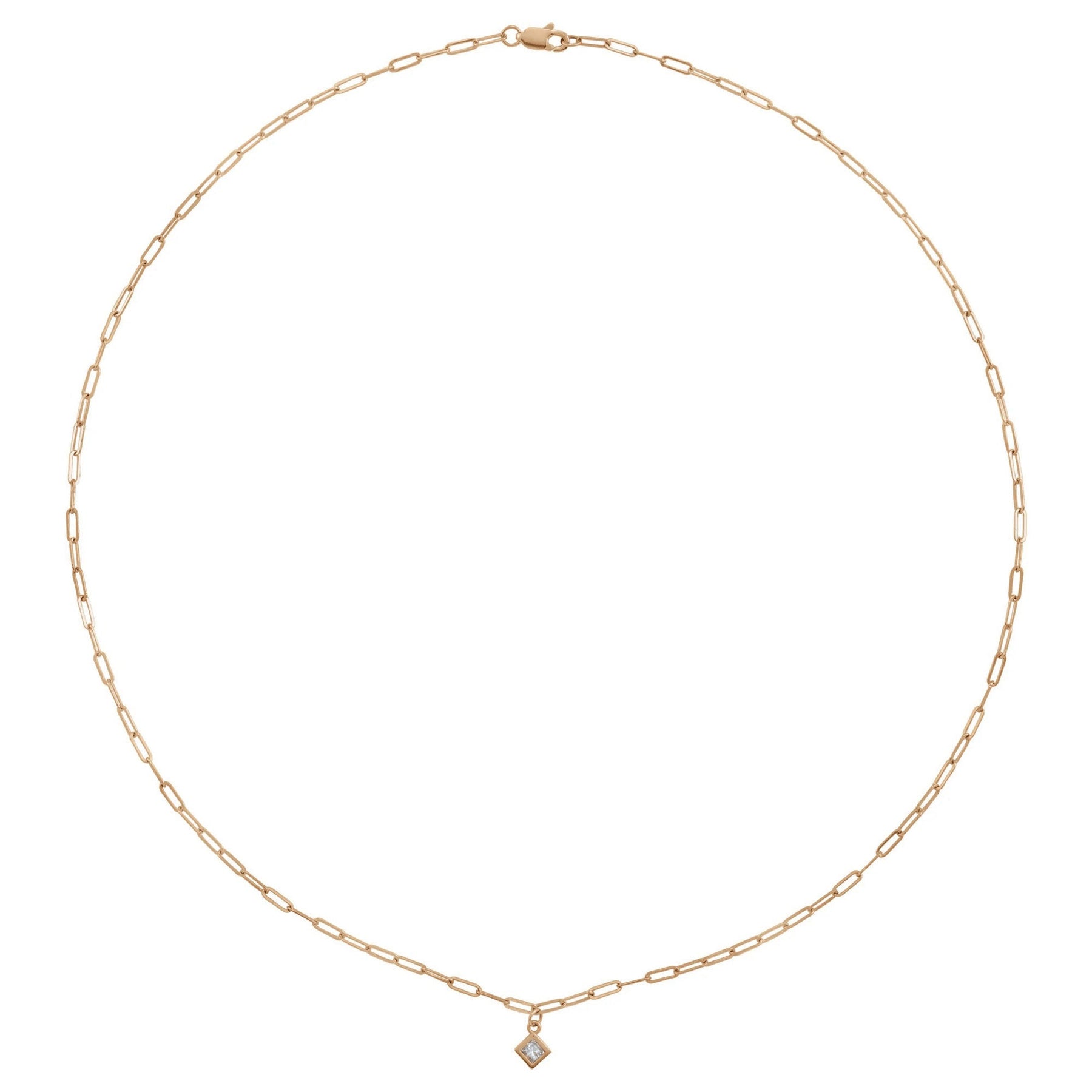 Square Diamond Bezel Solitaire Paperclip Necklace (14K) front - Lucky Diamond - New York