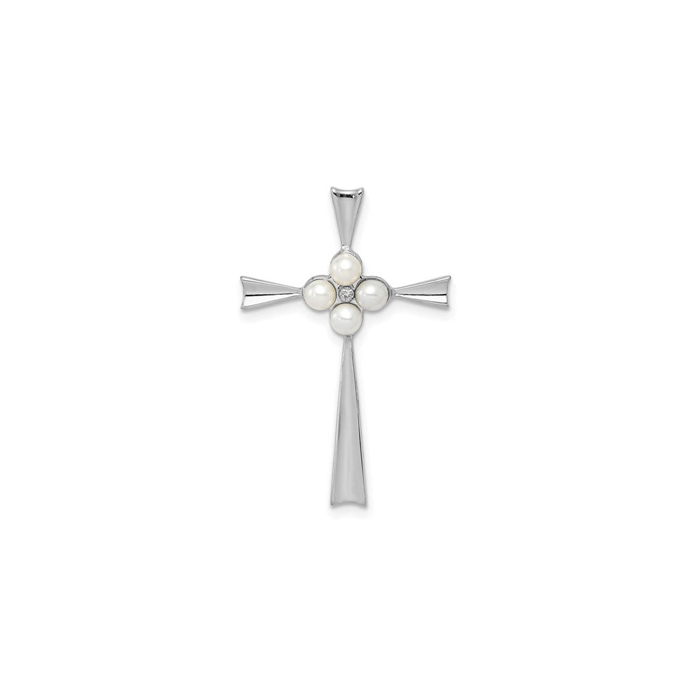 Diamond and Pearls Flower Cross Pendant (Silver) front - Lucky Diamond - New York