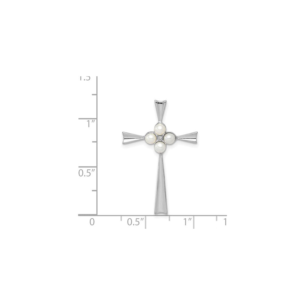 Diamond and Pearls Flower Cross Pendant (Silver) scale - Lucky Diamond - New York
