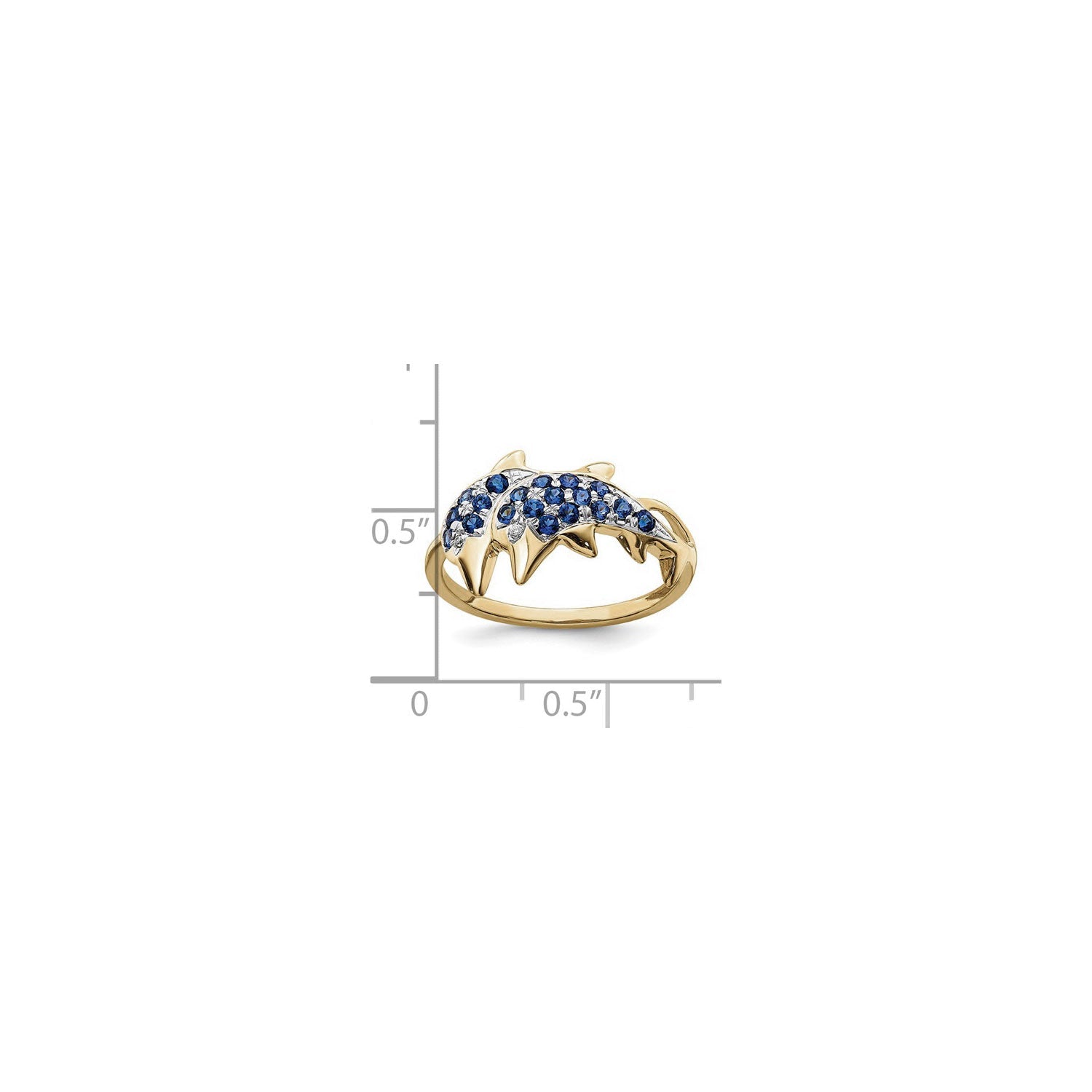 Diamond and Blue Sapphire Dolphin Couple Ring (14K) scale - Lucky Diamond - New York
