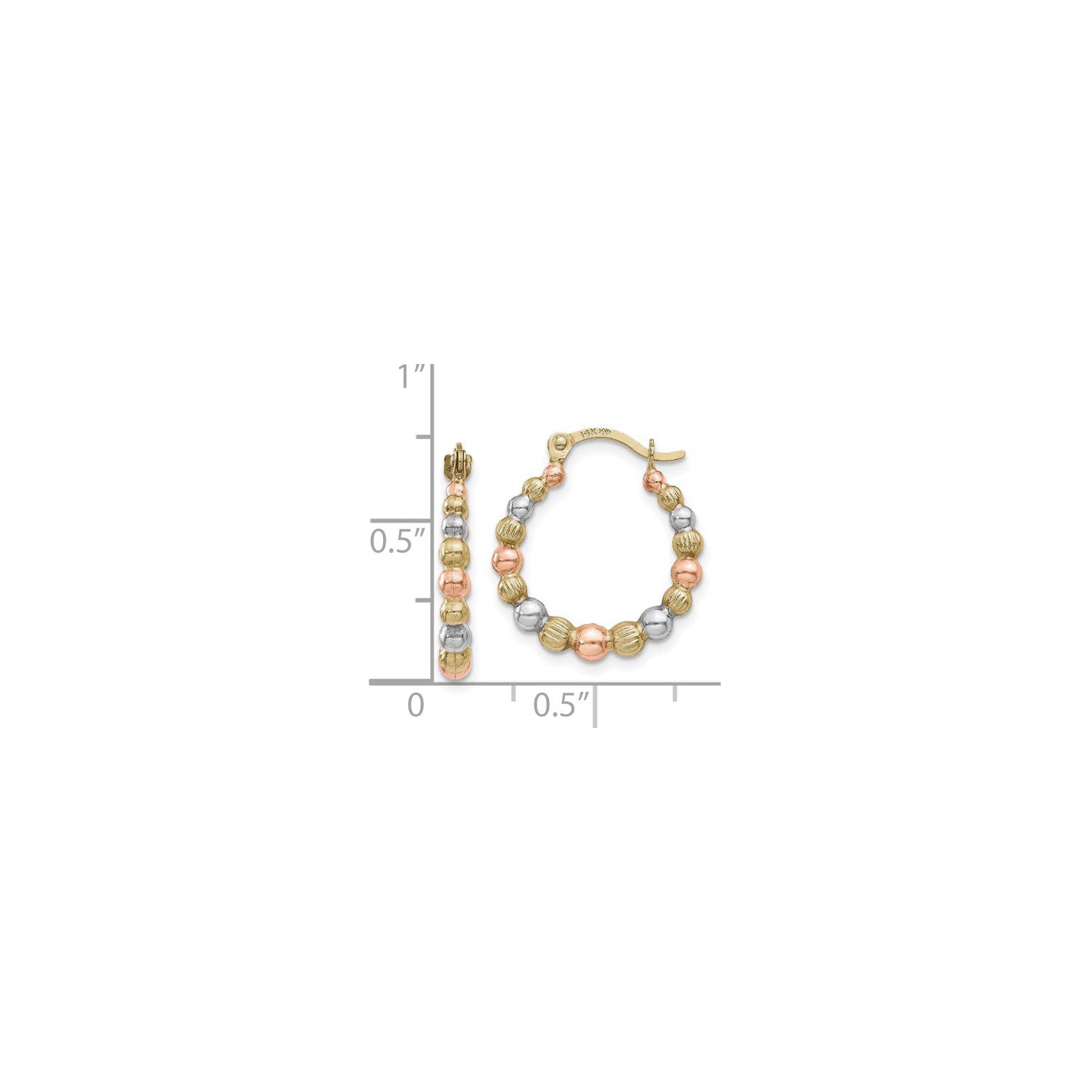Tricolor Beaded Creole Hoop Earrings (14K) scale - Lucky Diamond - New York