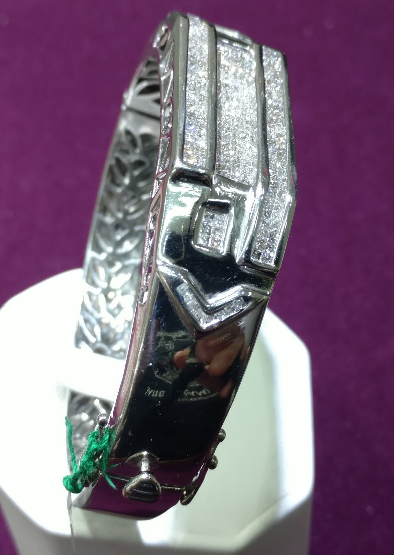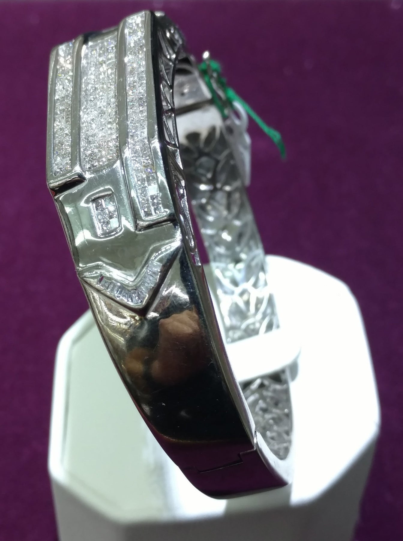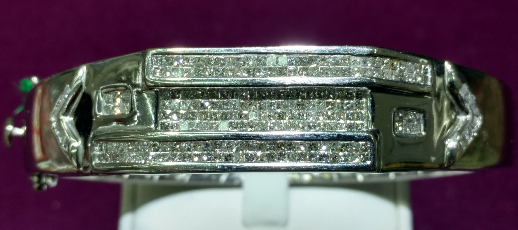 Esta llamativa pulsera para hombre presenta tres filas de bloques de cubitos de hielo invisibles.