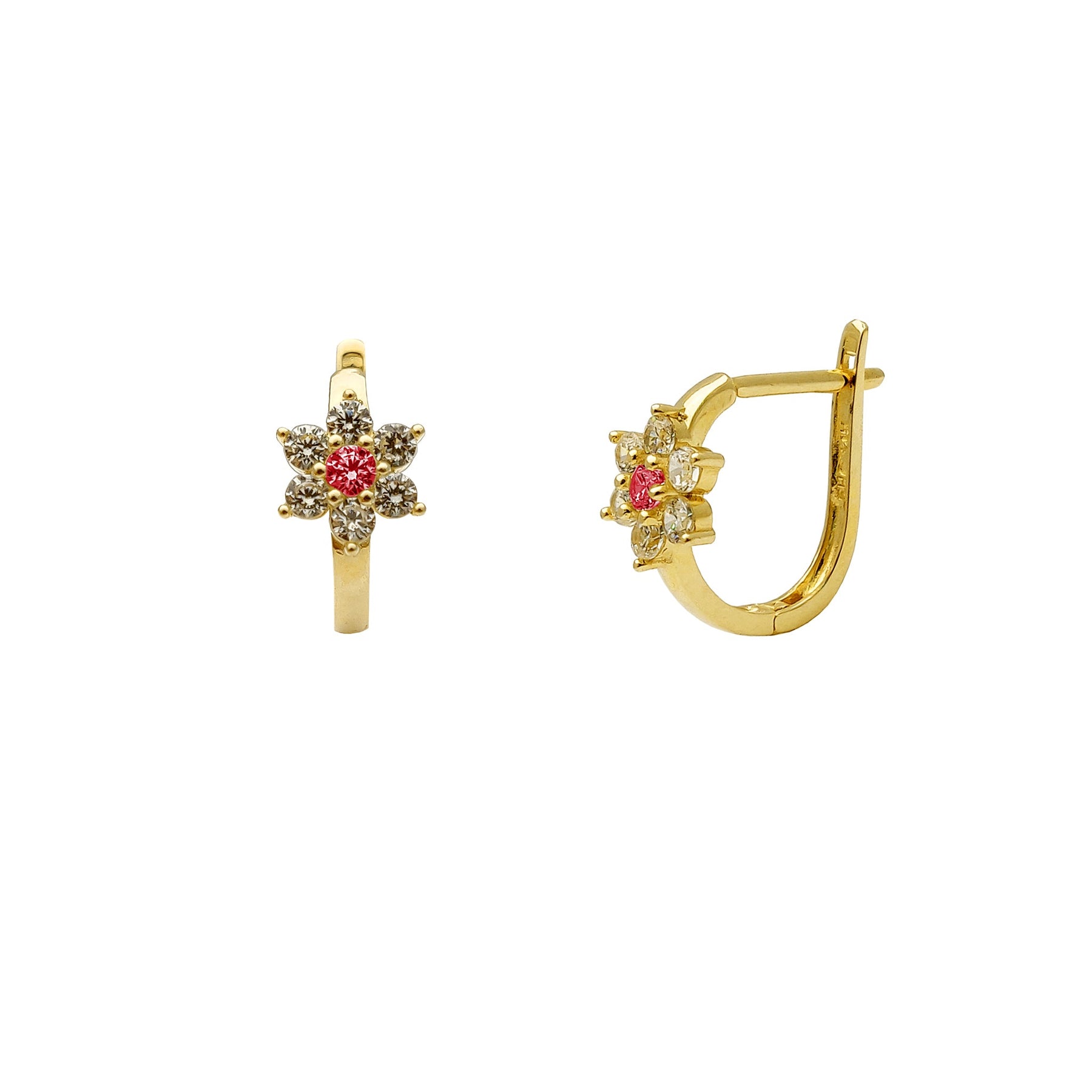 Pendientes Huggie con forma de flor de circonita cúbica (14 quilates).