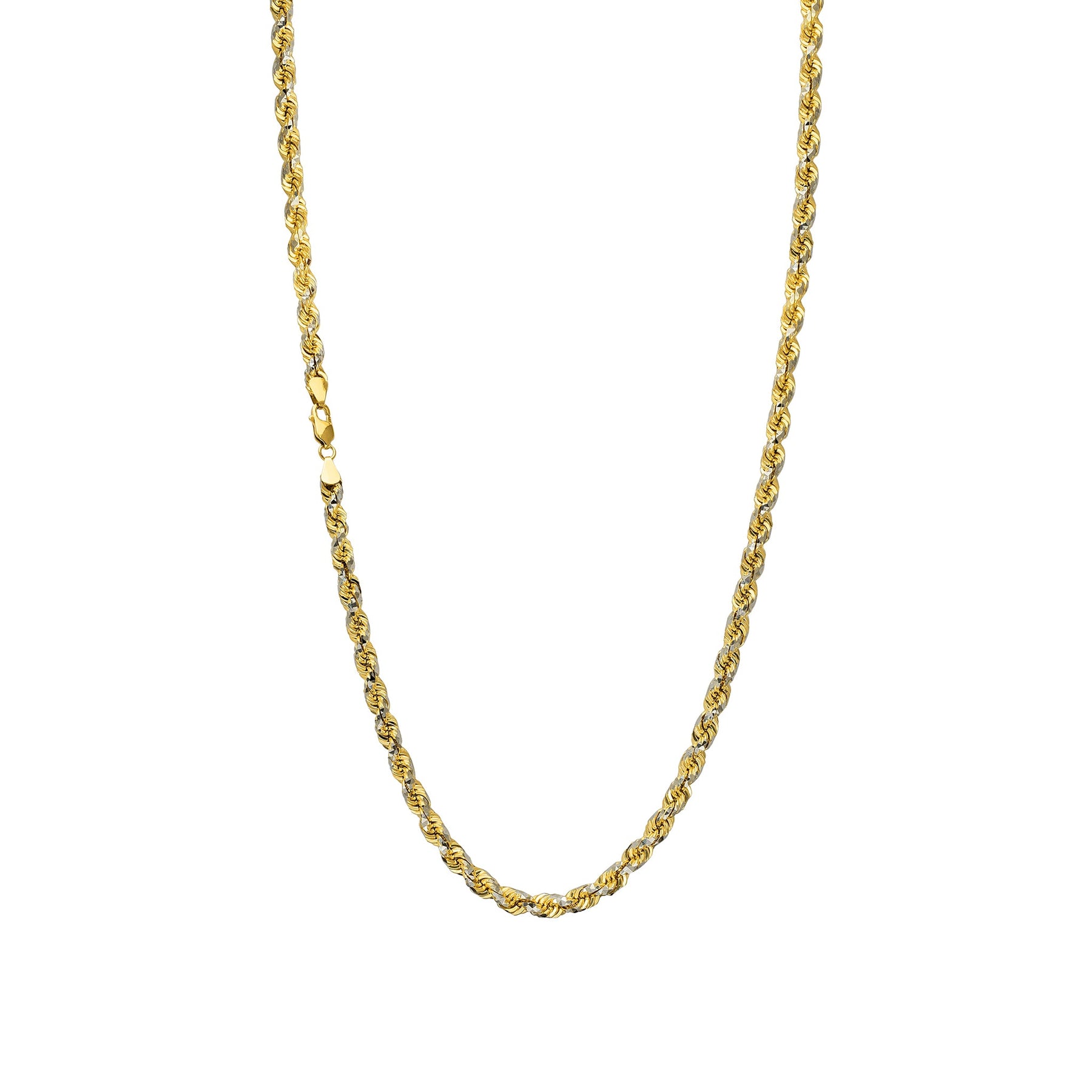 NOTA: Los diseños de cuerda como esta cadena requieren un cuidado especial durante su uso. Para garantizar que la cadena se mantenga en perfecto estado, NO aplaste ni someta los eslabones a una fuerza excesiva. Estas actividades incluyen, entre otras: levantar objetos pesados, practicar deportes de contacto y dormir.