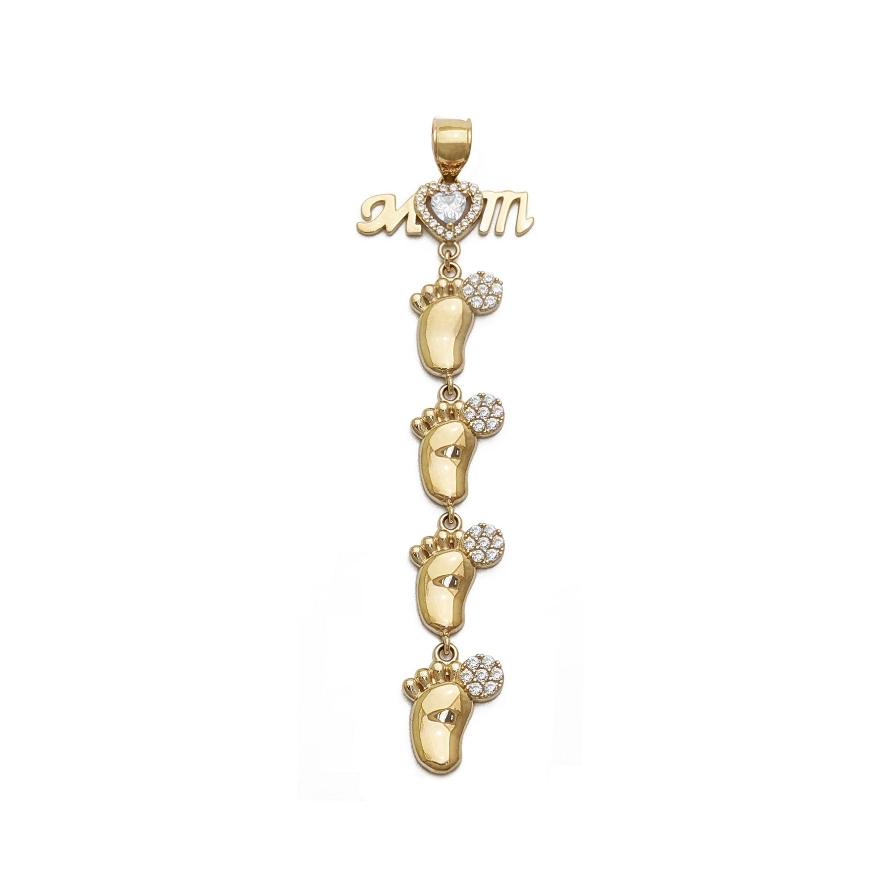 Colgante de circonita blanca "Pasos para bebés de mamá" (14 quilates)
