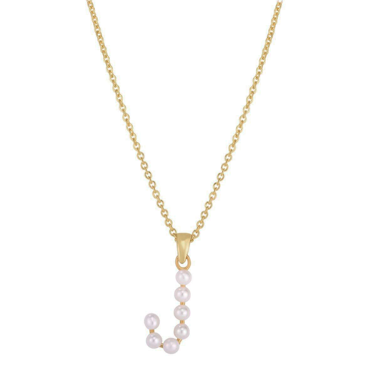 Pearl Initial Letter Necklace J (14K) front - Lucky Diamond - New York