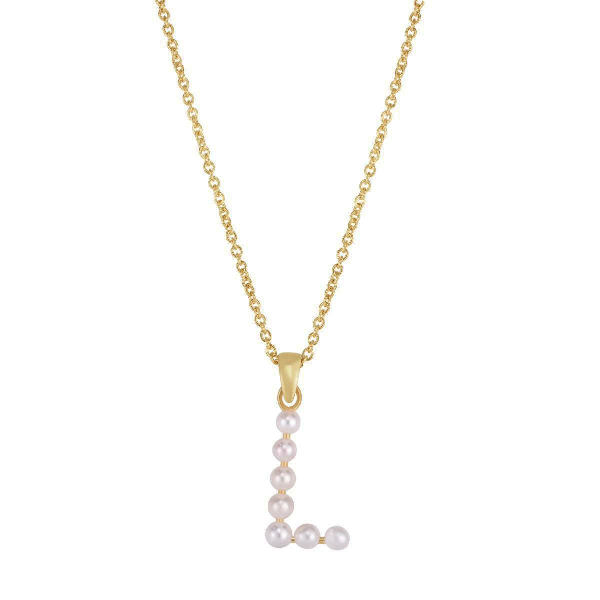 Pearl Initial Letter Necklace L (14K) front - Lucky Diamond - New York