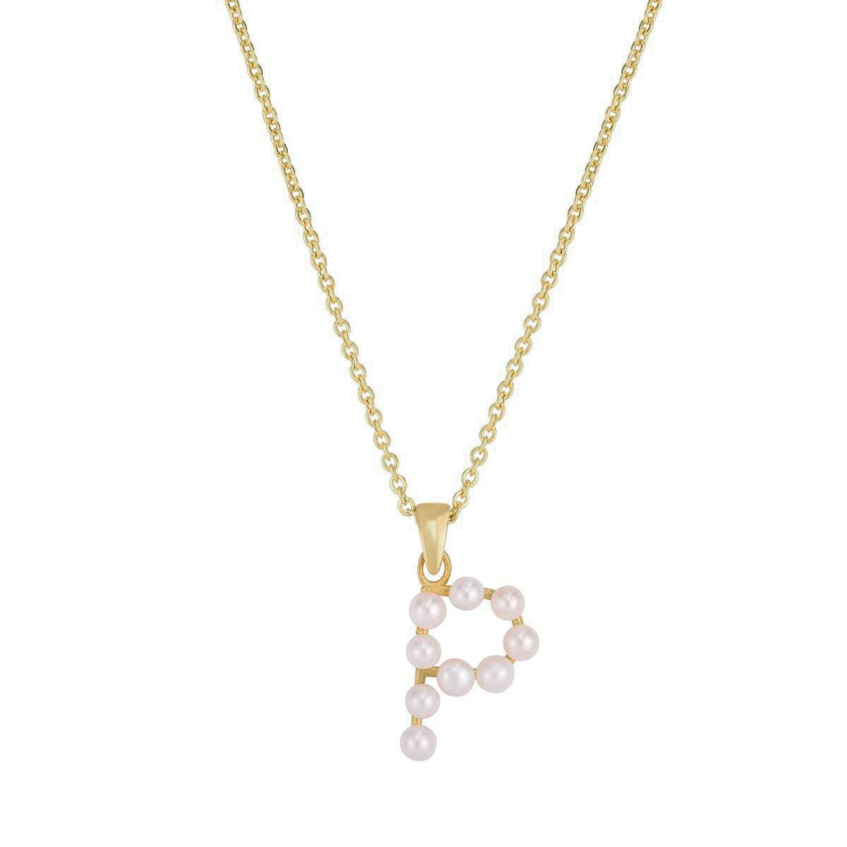 Pearl Initial Letter Necklace P (14K) front - Lucky Diamond - New York