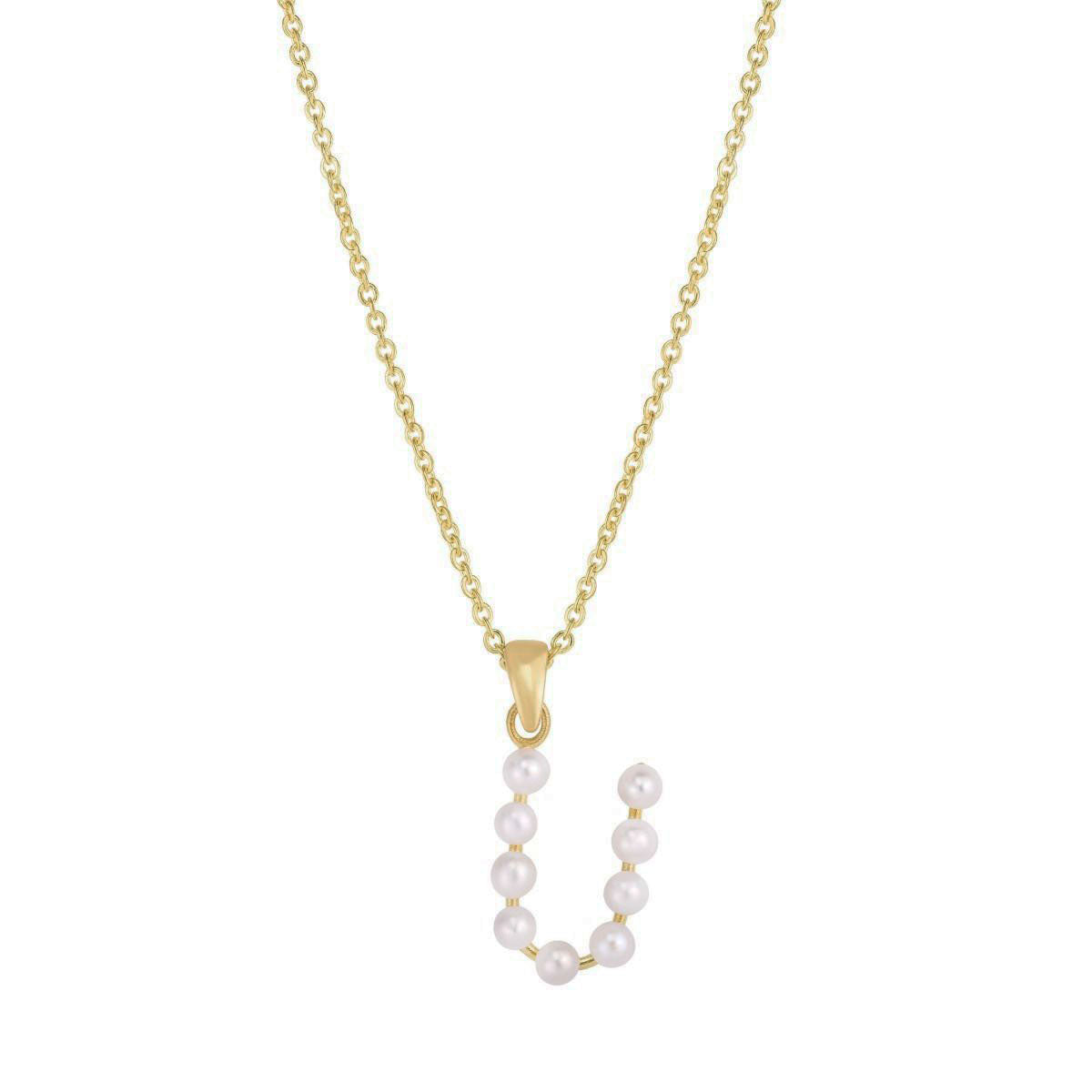 Pearl Initial Letter Necklace U (14K) front - Lucky Diamond - New York