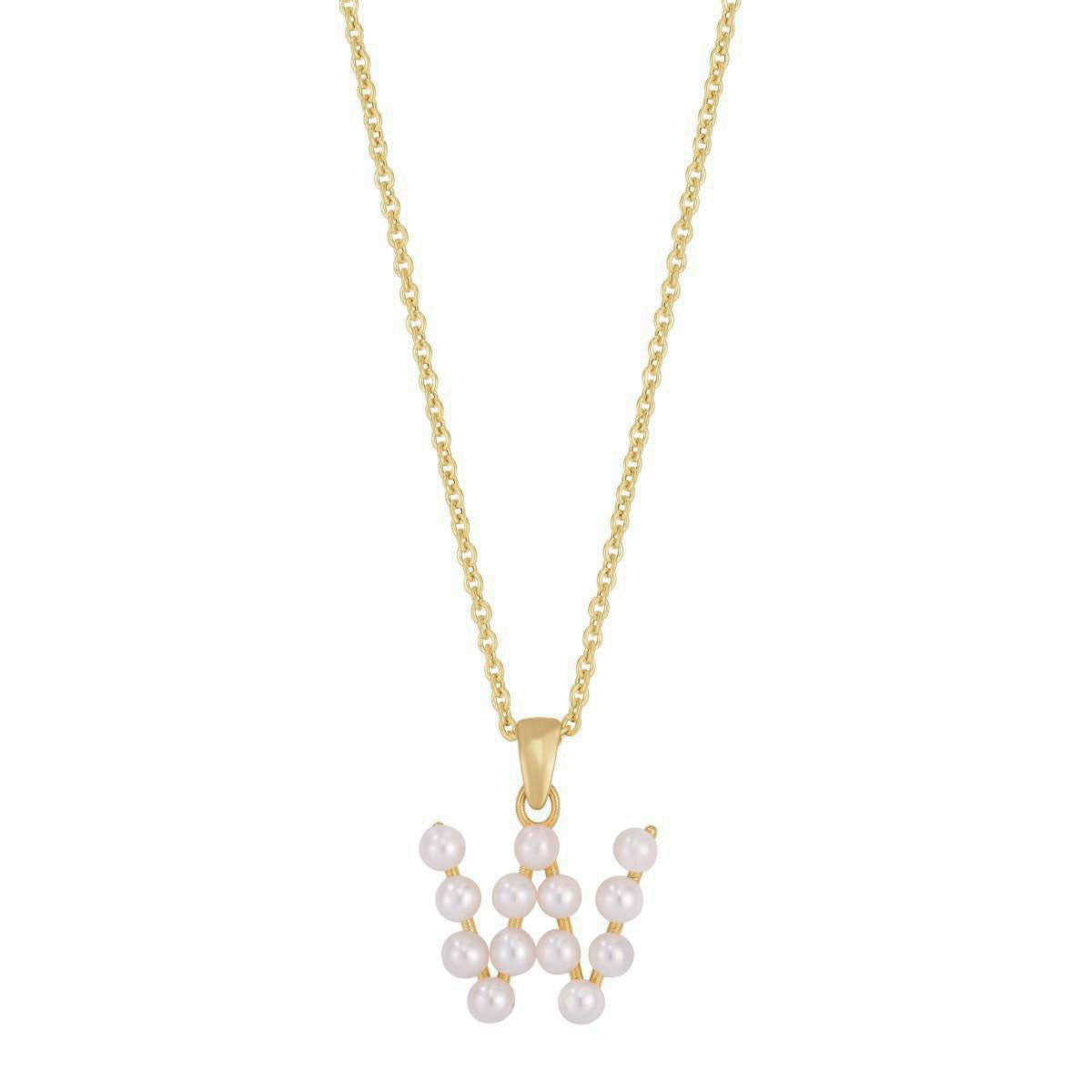 Pearl Initial Letter Necklace W (14K) front - Lucky Diamond - New York