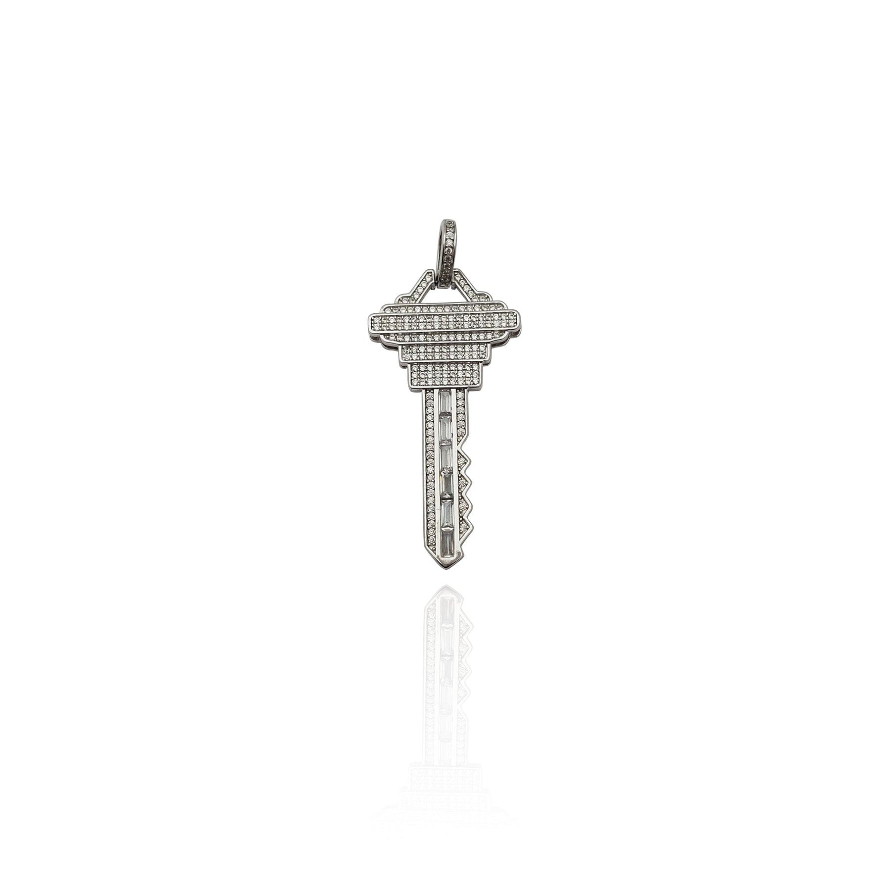 Iced-Out Modern Key CZ Pendant (Silver) New York Lucky Diamond