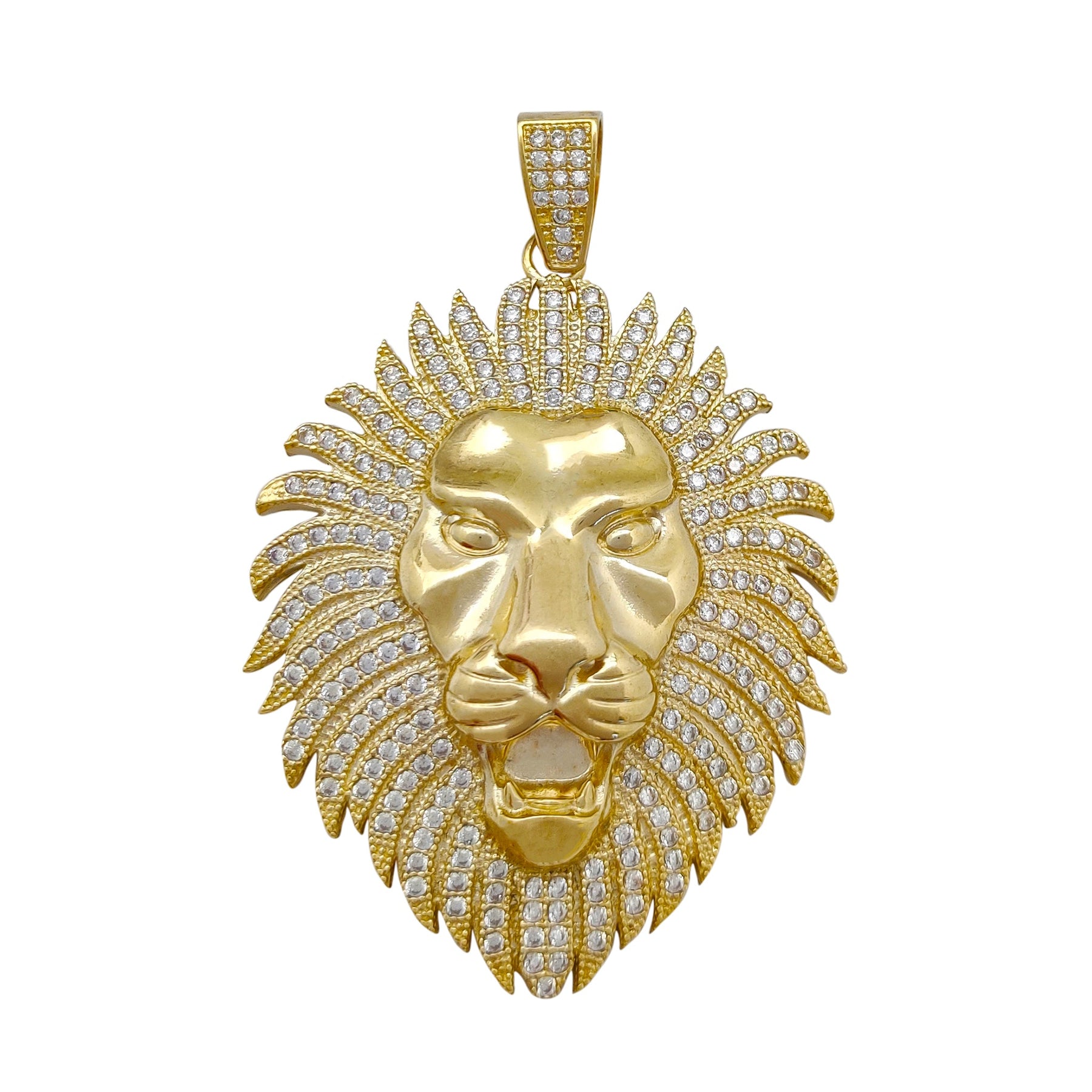 Large Pave Setting Lion Head Pendant (10K) Lucky Diamond New York