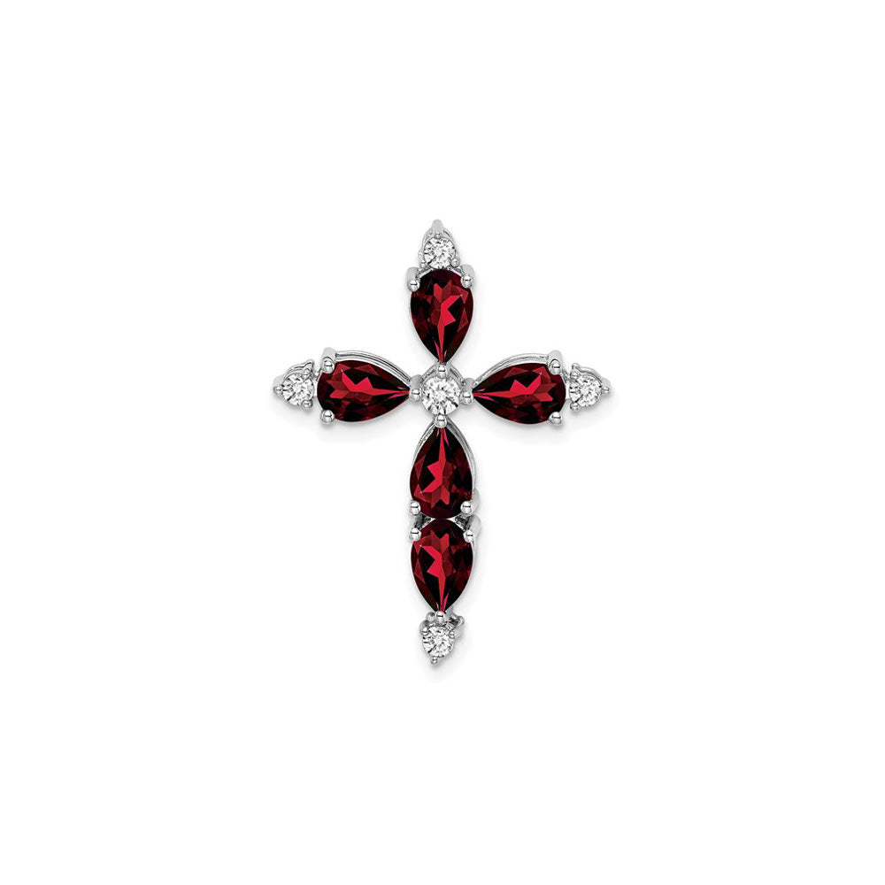 Pear-Cut Red Garnet and Diamond Cross Pendant (14K) front - Lucky Diamond - New York