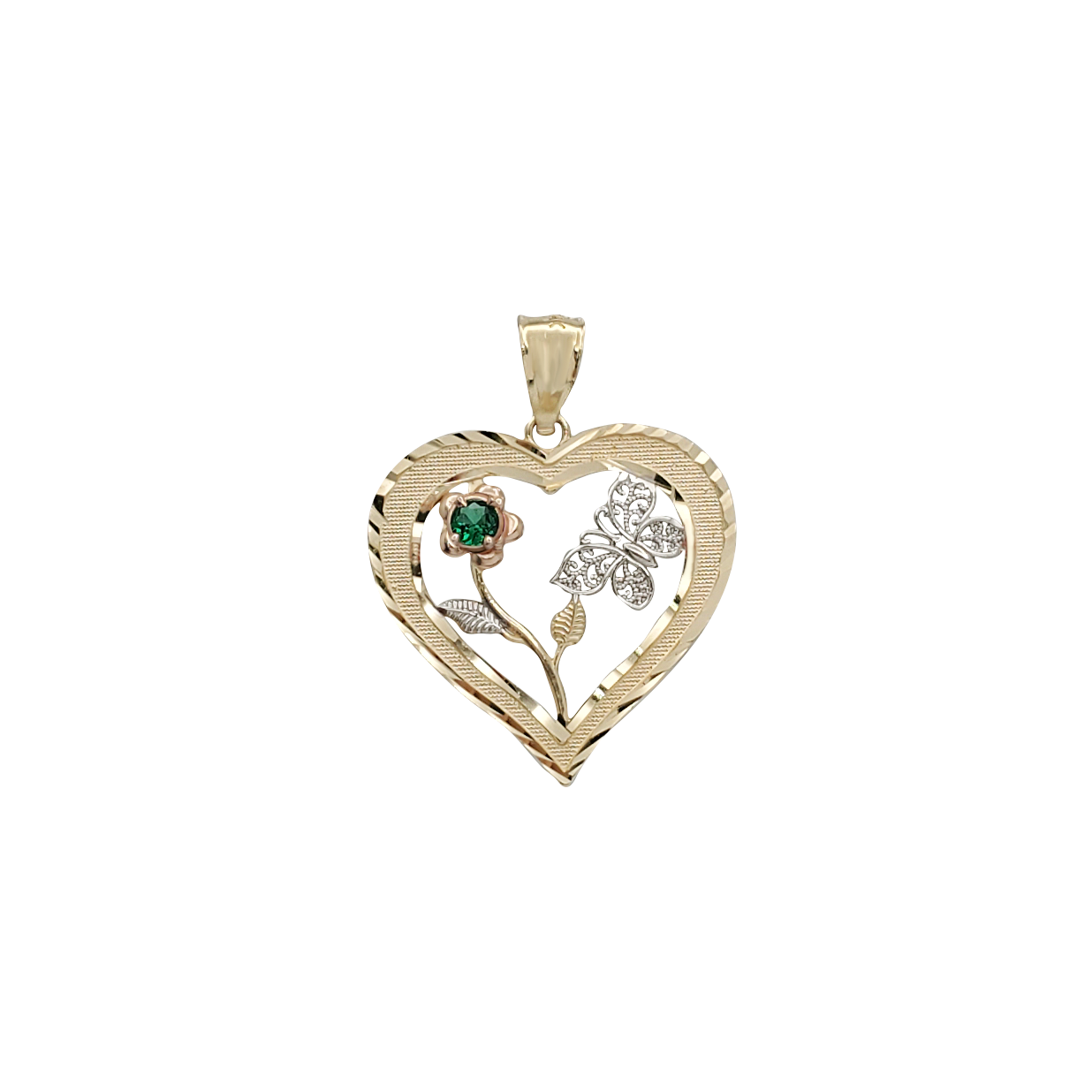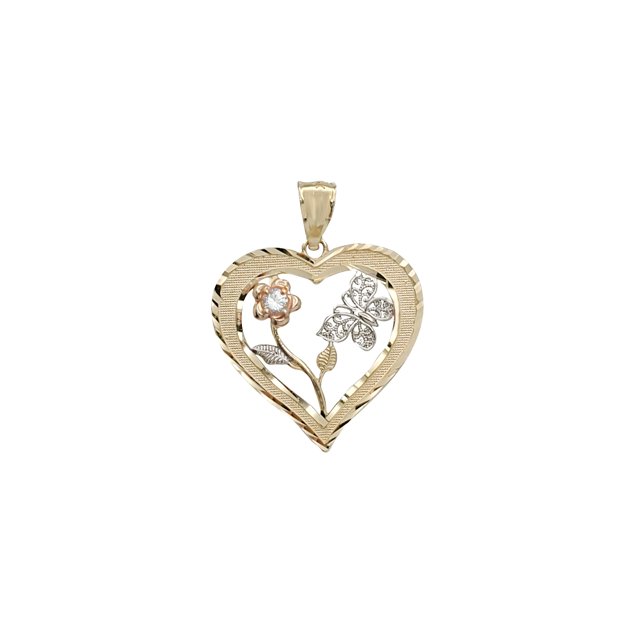 Colgante de corazón de rosa y mariposa (14 quilates)
