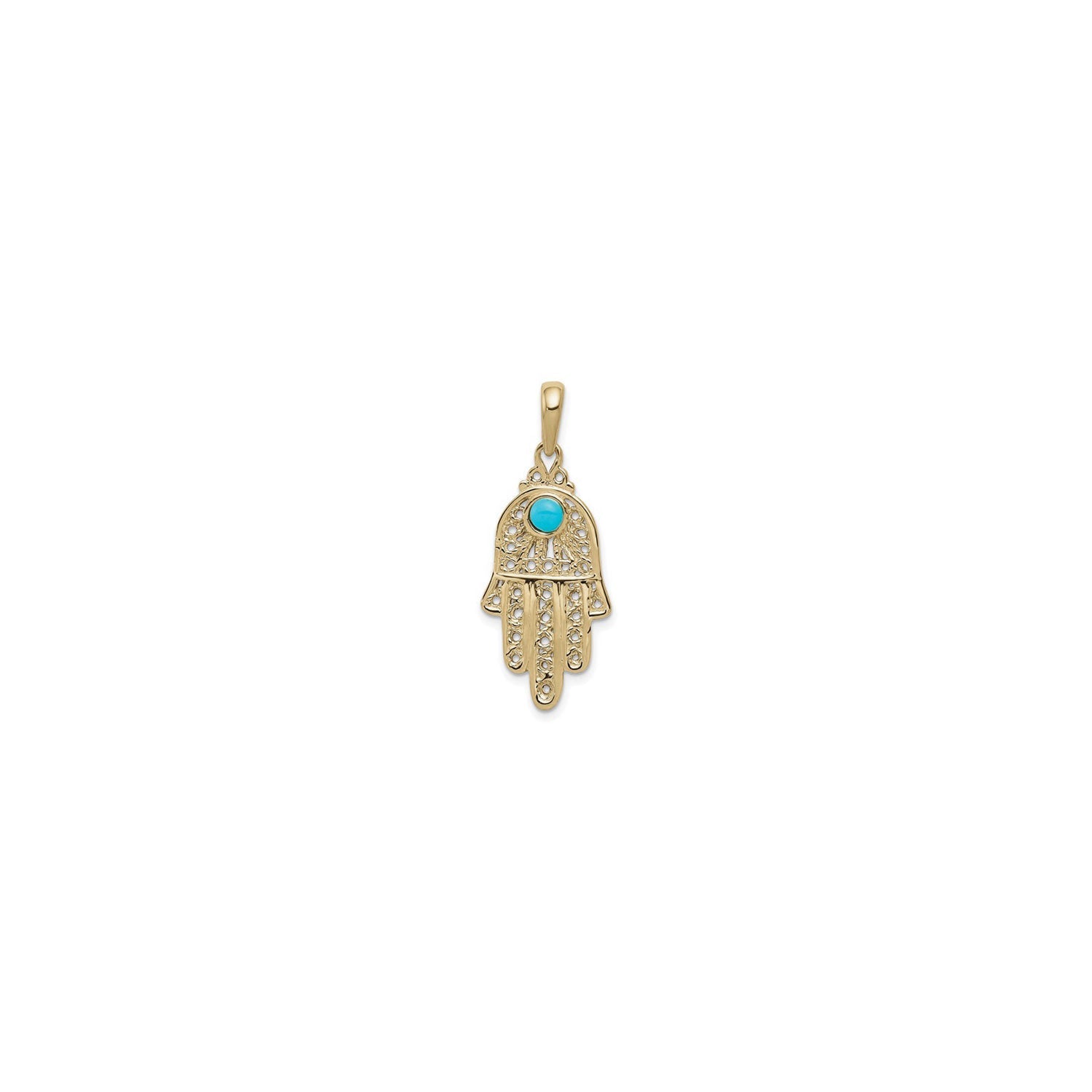 Turquoise Filigree Chamseh Pendant (14K) front - Lucky Diamond - New York