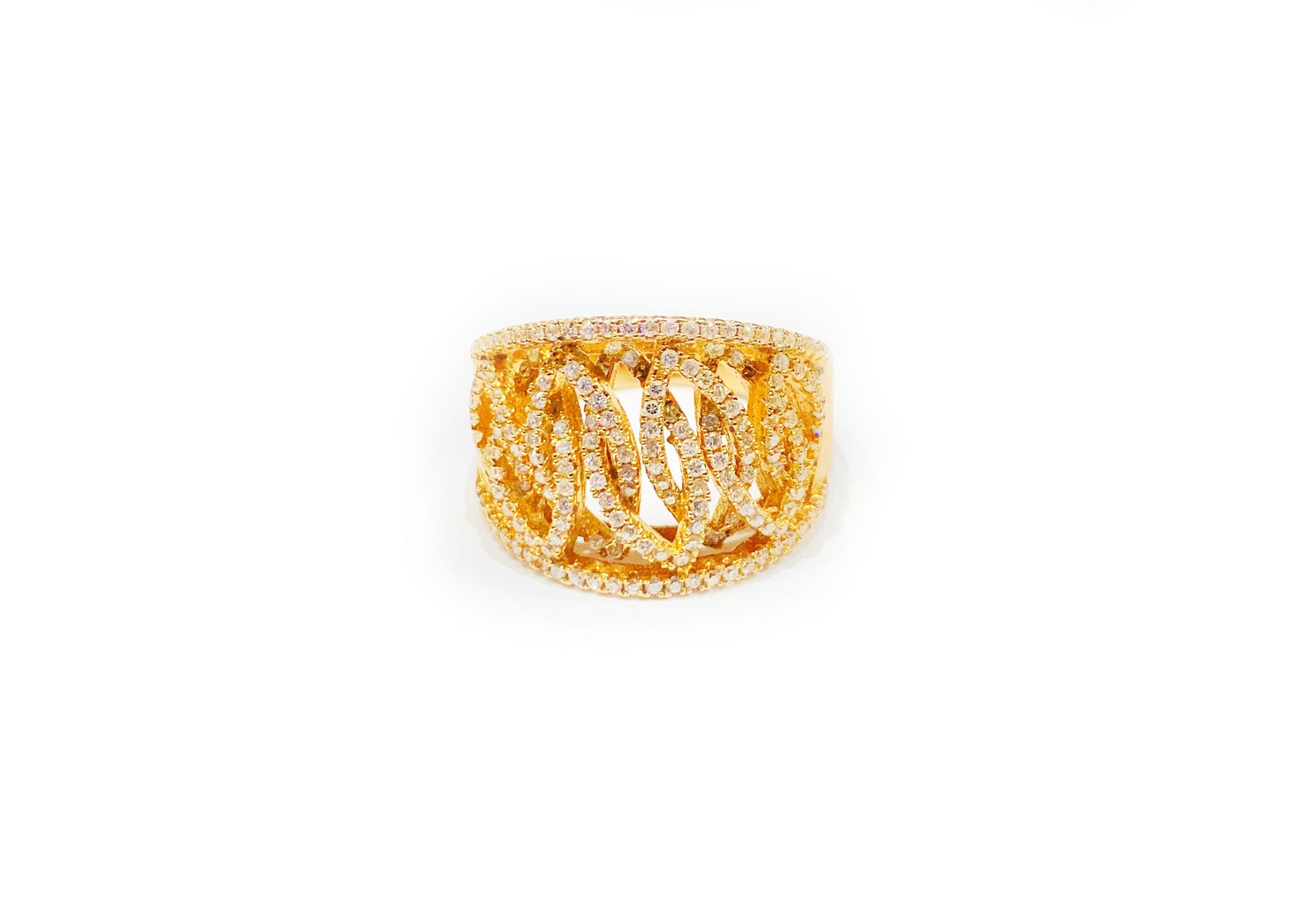 Este es un brillante anillo Party Link con piedras de circonita cúbica.