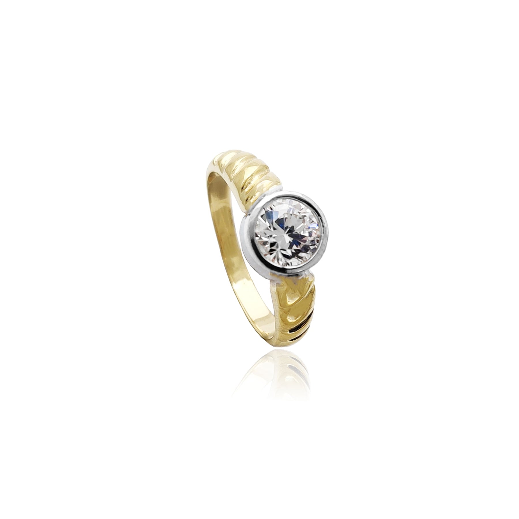 Round Bezel-Set Rope Ring (14K) Lucky Diamond New York