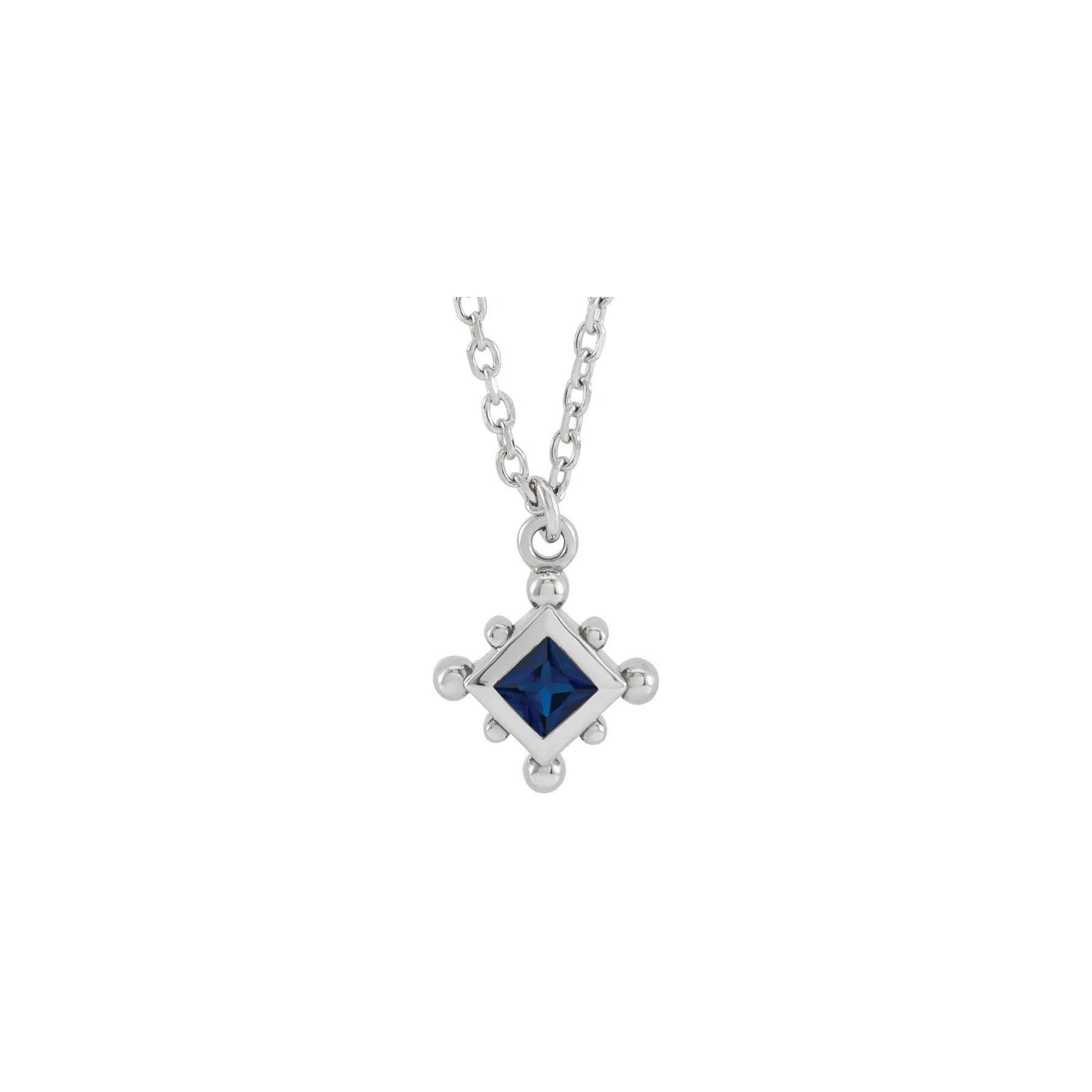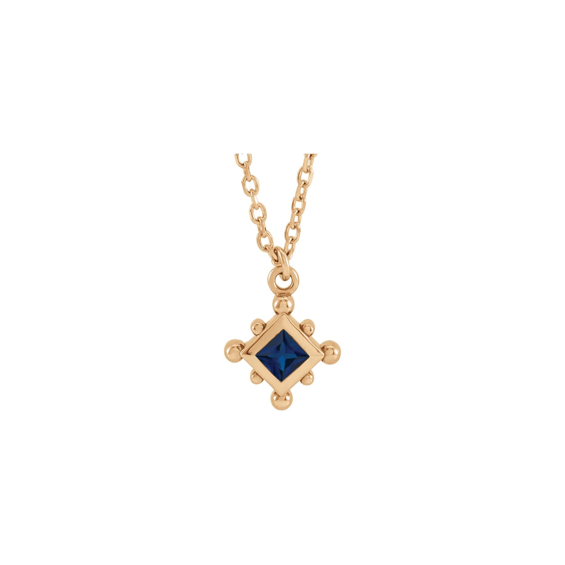 Natural Blue Sapphire Beaded Bezel Set Necklace (14K)