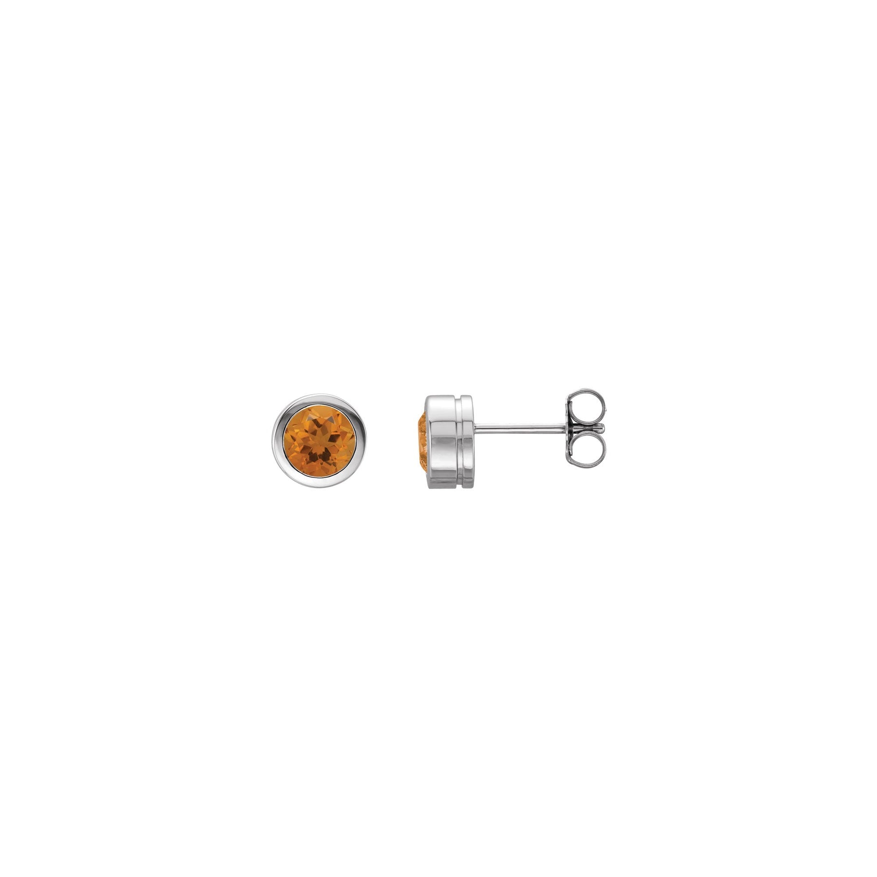 Natural Round Citrine Bezel Stud Earrings