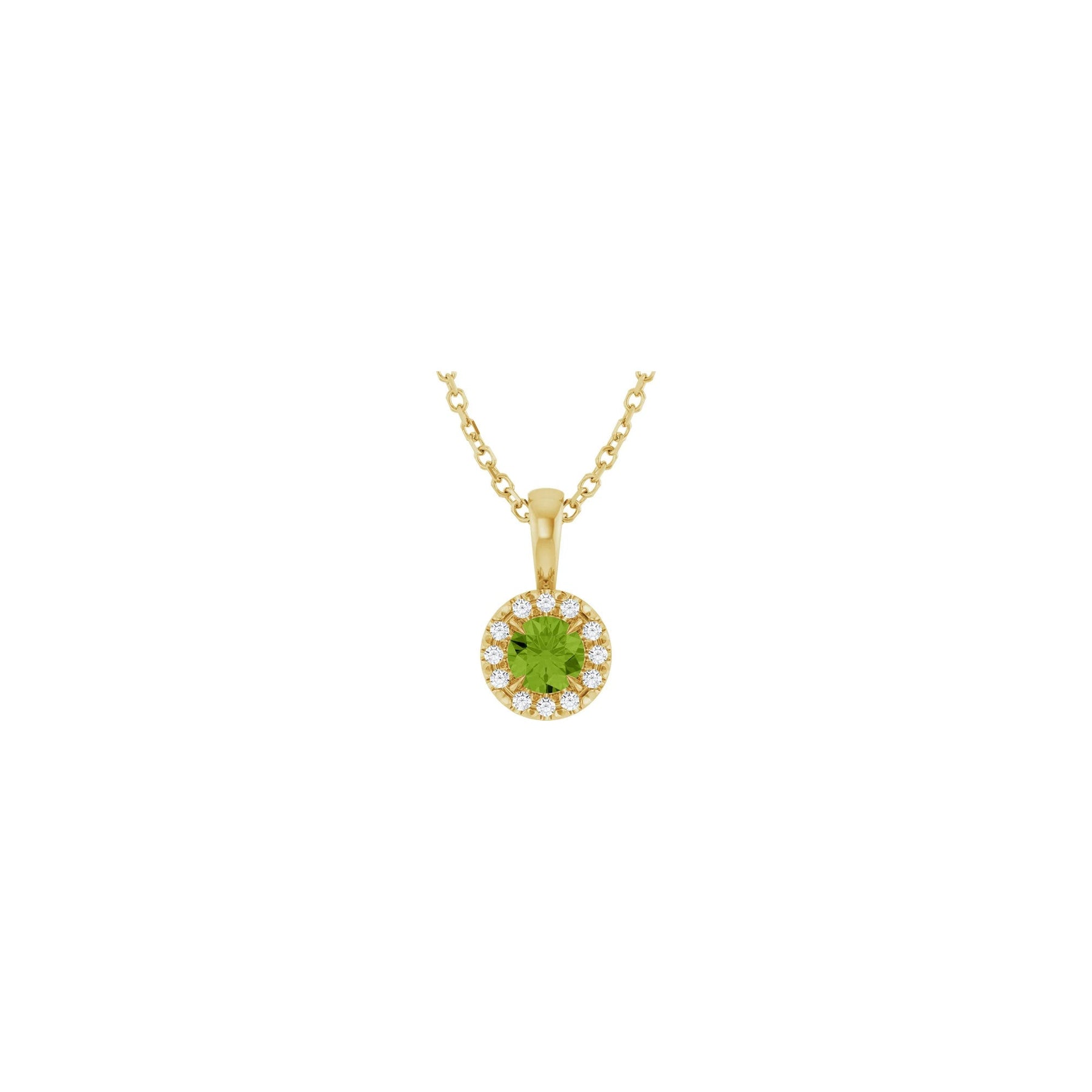 Natural Round Peridot and Diamond Halo Necklace