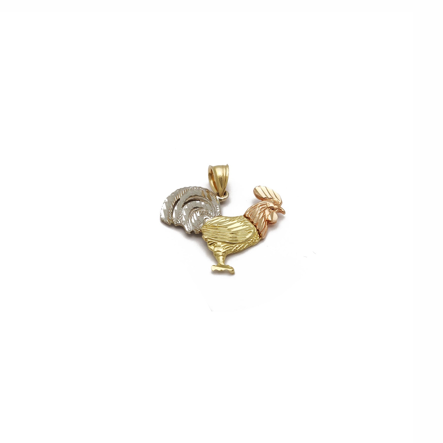 Rooster Pendant (14K) 14 Karat Tri Tone, Yellow Gold, White Gold, Rose Gold, Lucky Diamond New York