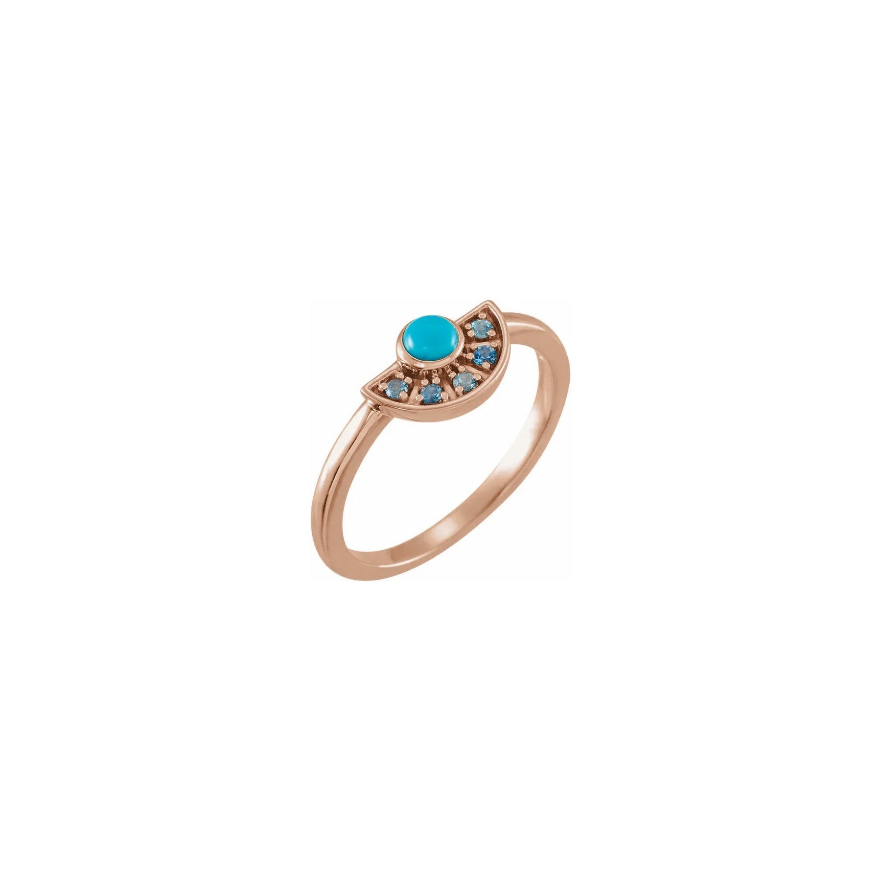 Turquoise and Aquamarine Fan Ring rose (14K) main - Lucky Diamond - New York