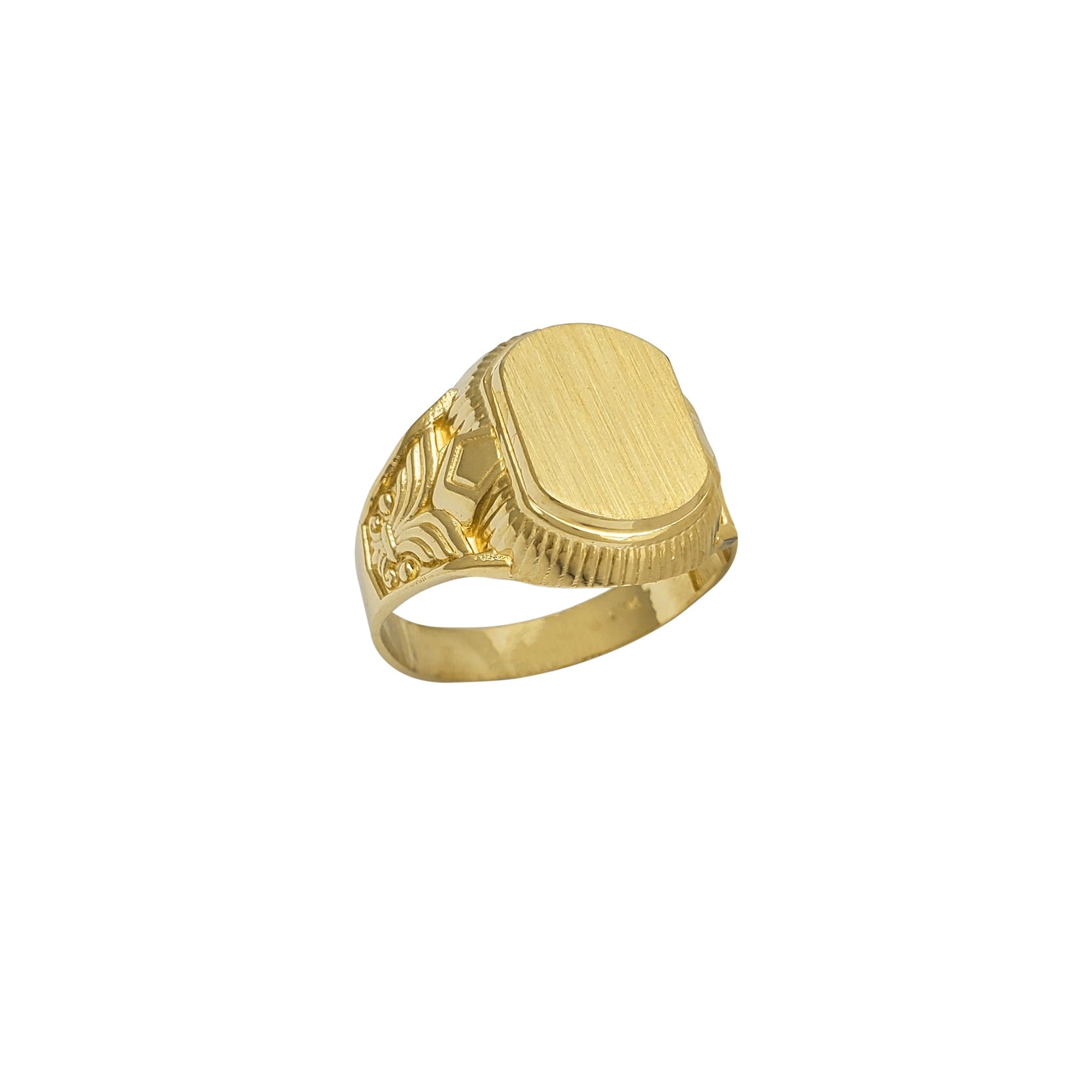 Anillo de sello rectangular con textura de flor de lis y acabado cepillado para hombre (14 quilates)