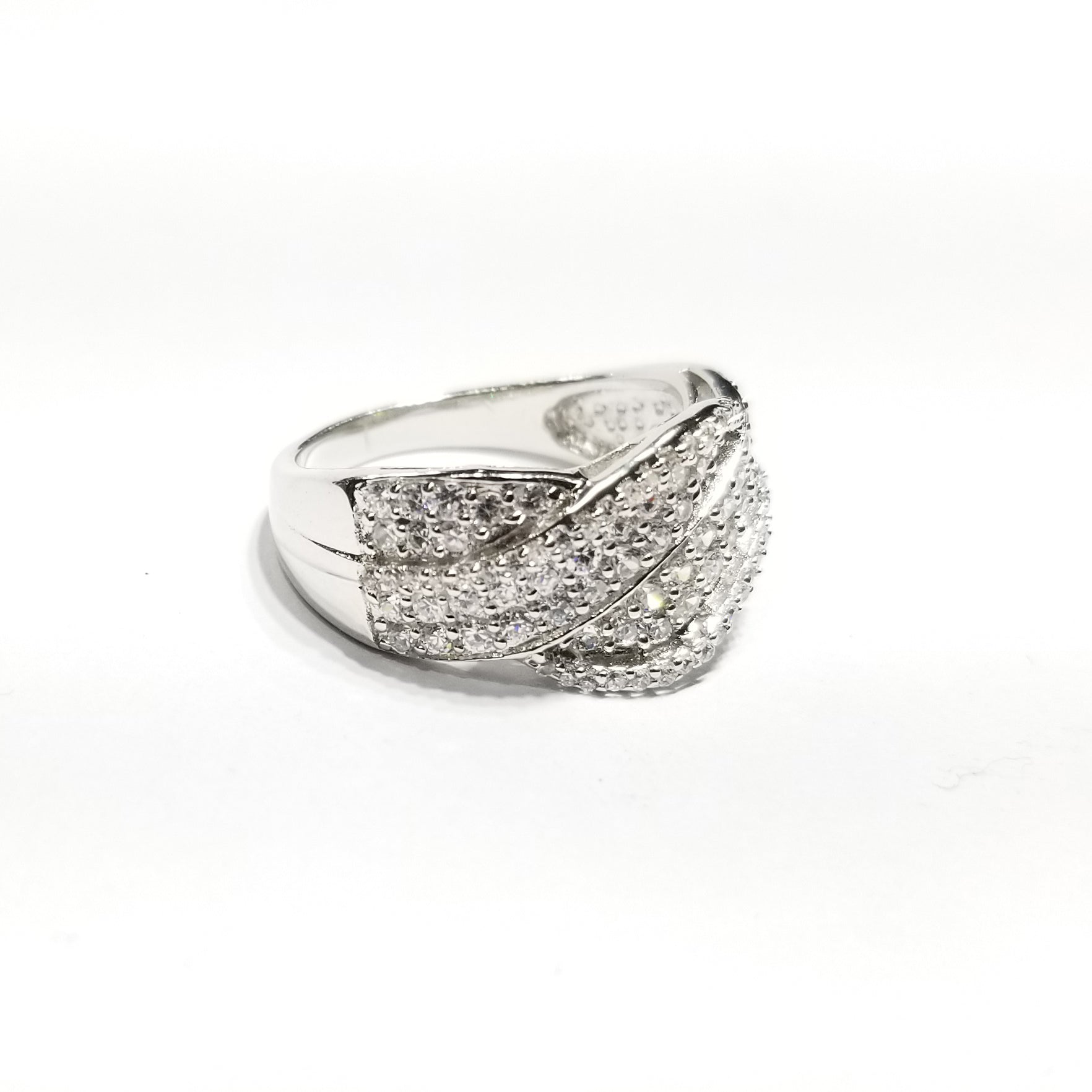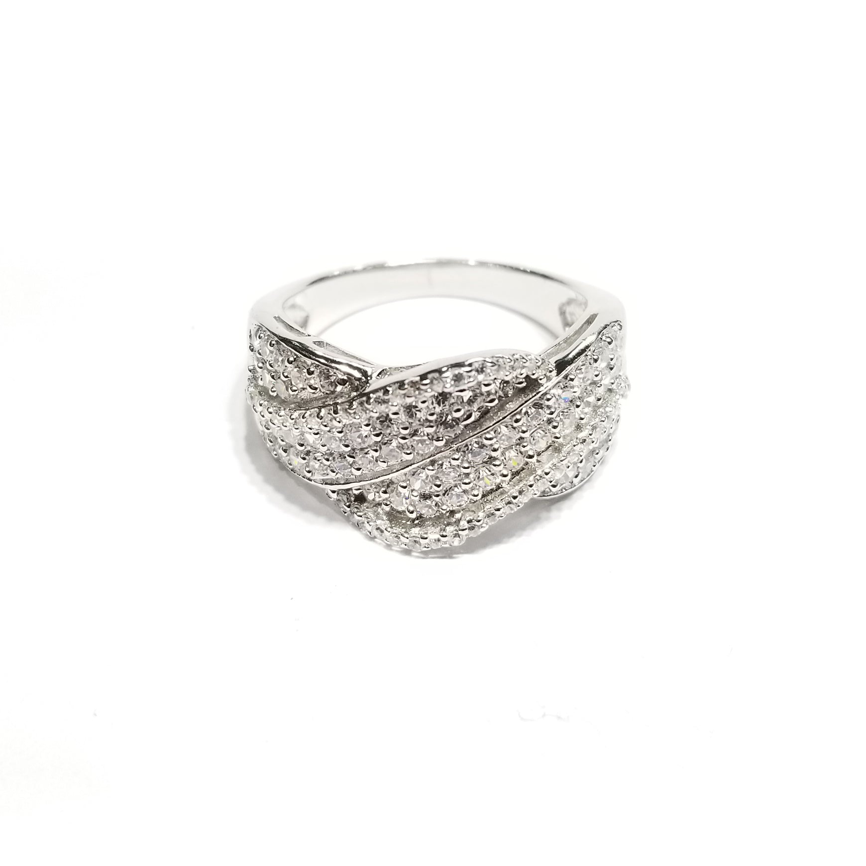 Este es un brillante anillo de triple onda con piedras de circonita cúbica.