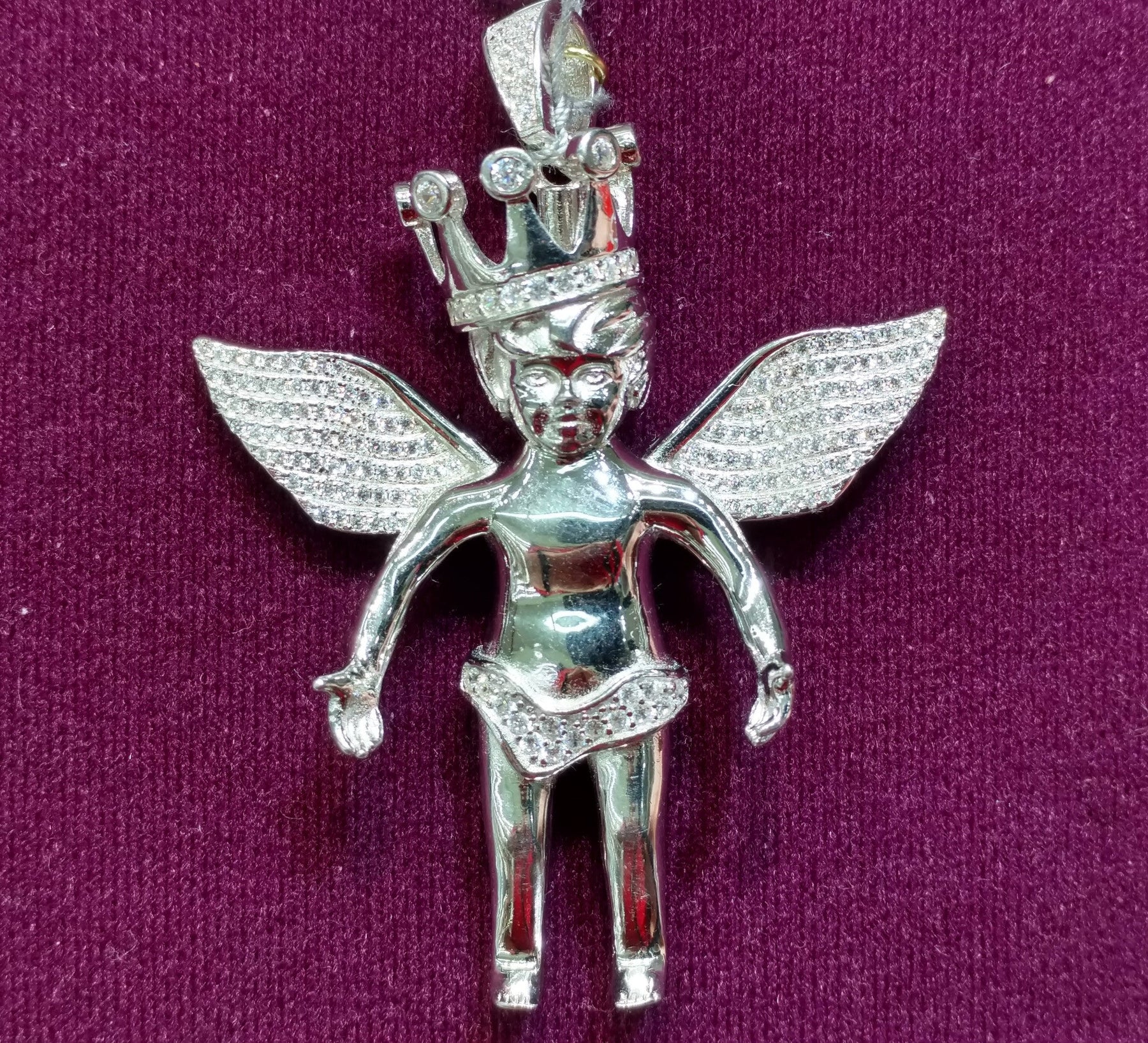 Iced-Out Crowned Baby Angel Pendant Silver - Lucky Diamond 恆福珠寶金行 New York City 169 Canal Street 10013 Jewelry store Playboi Charlie Chinatown @luckydiamondny 2124311180
