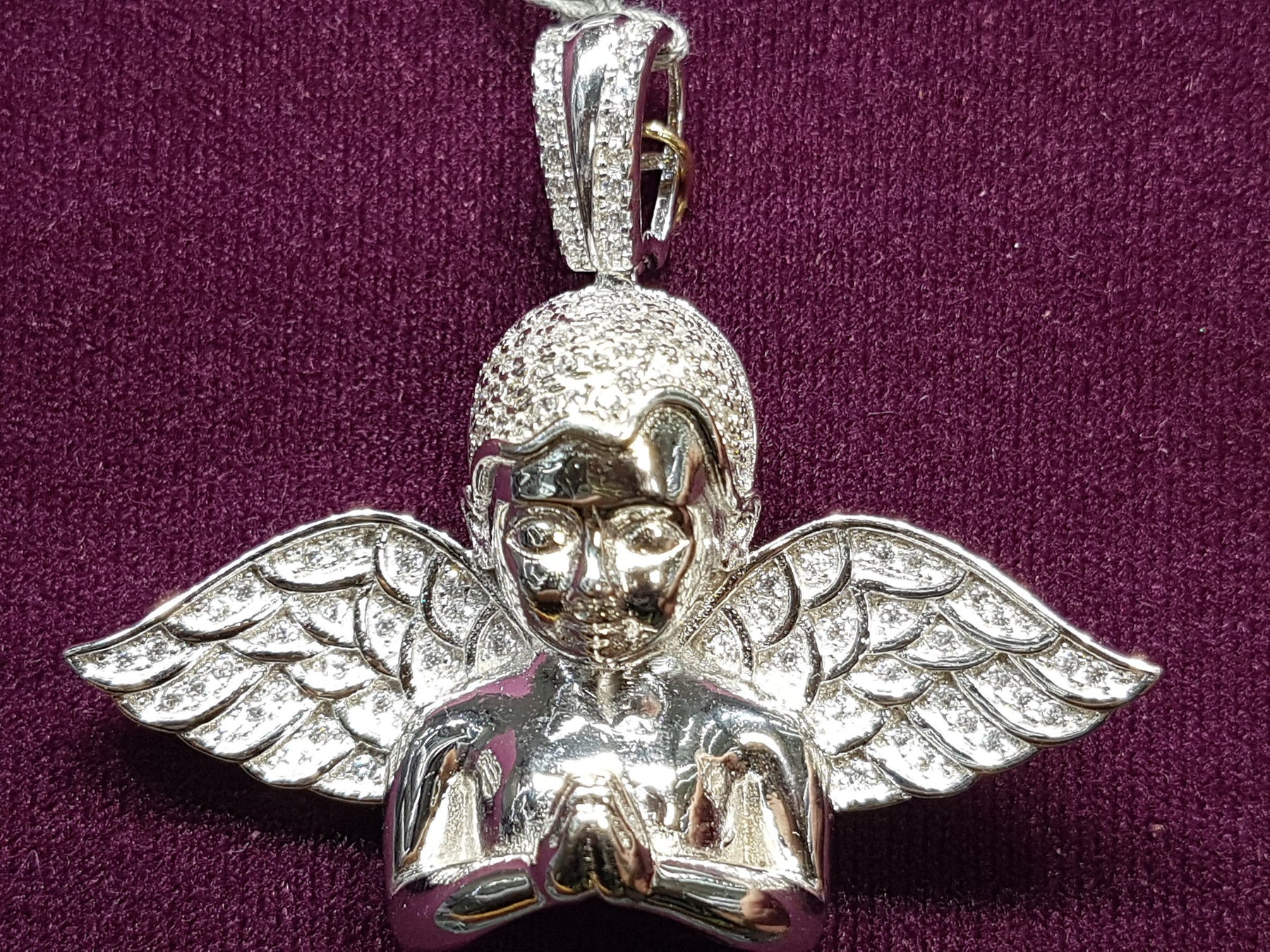 Iced-Out Praying Half Angel Pendant Silver - Lucky Diamond 恆福珠寶金行 New York City 169 Canal Street 10013 Jewelry store Playboi Charlie Chinatown @luckydiamondny 2124311180