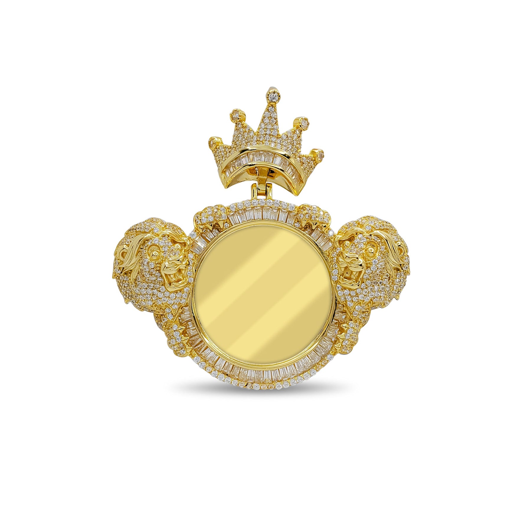Colgante conmemorativo redondo de circonita con corona real y leones (plata)