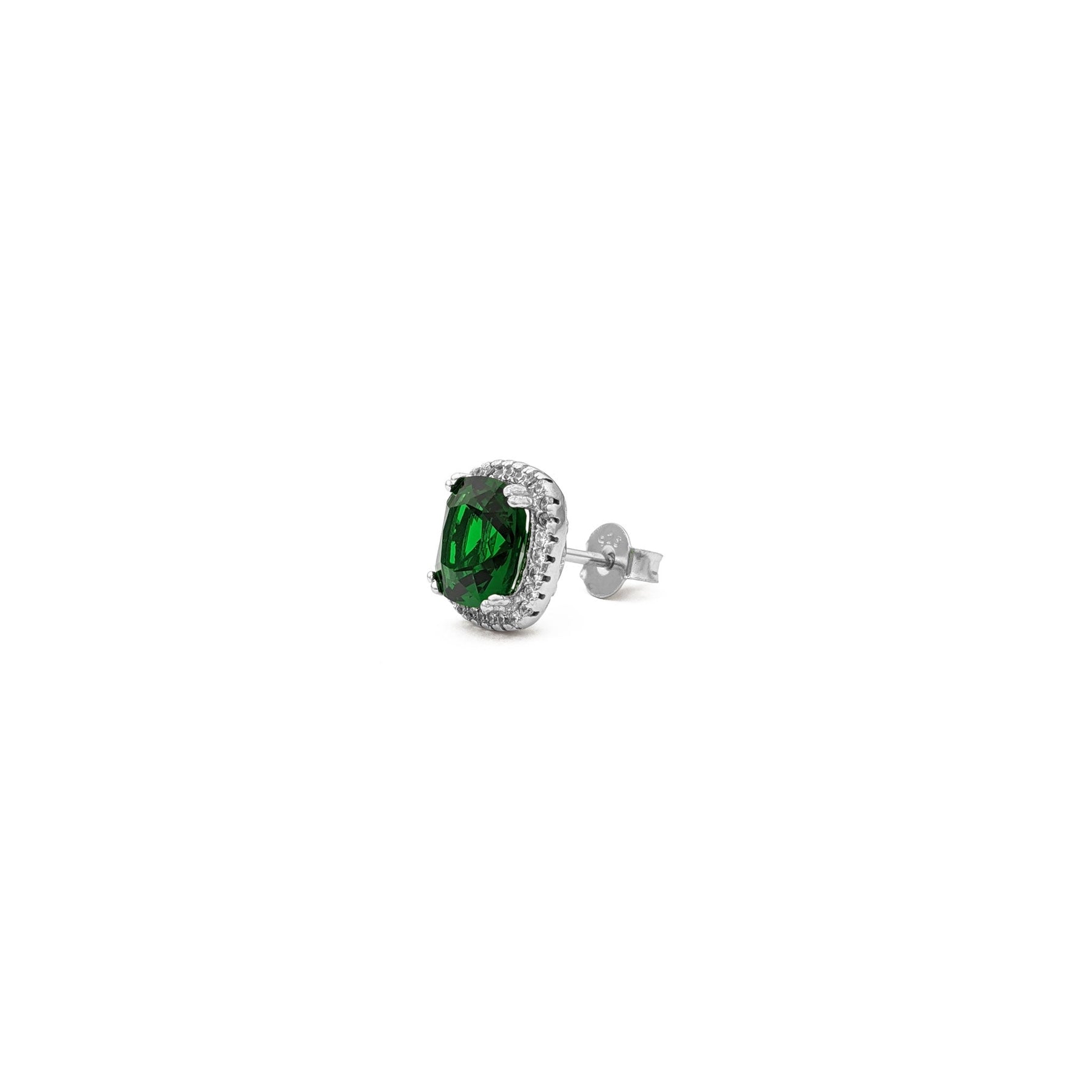 Green Radiant-Cut Cushion Halo Stud Earrings (Silver) main - Lucky Diamond - New York