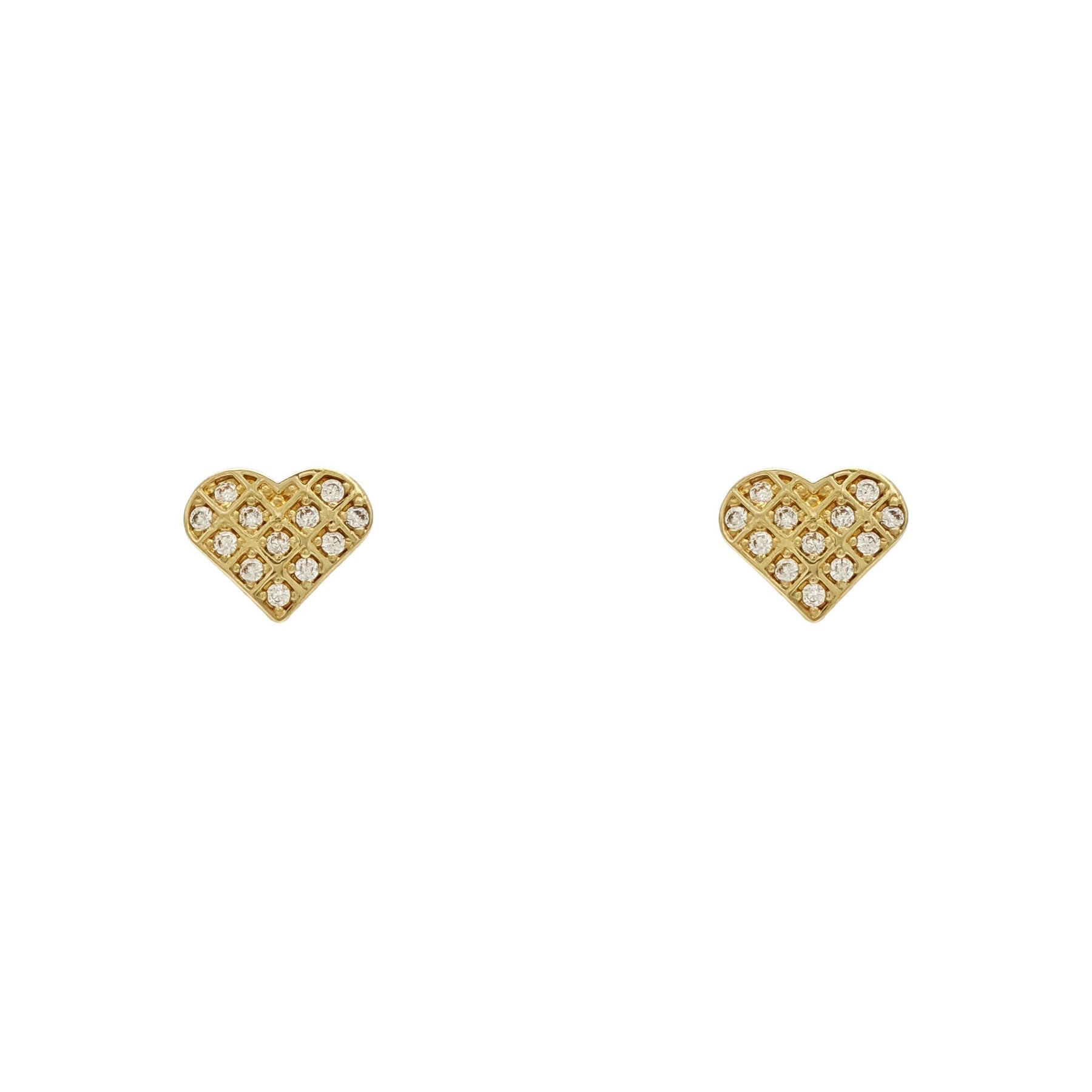 Quilted Icy Heart Stud Earrings Yellow (14K) main - Lucky Diamond - New York