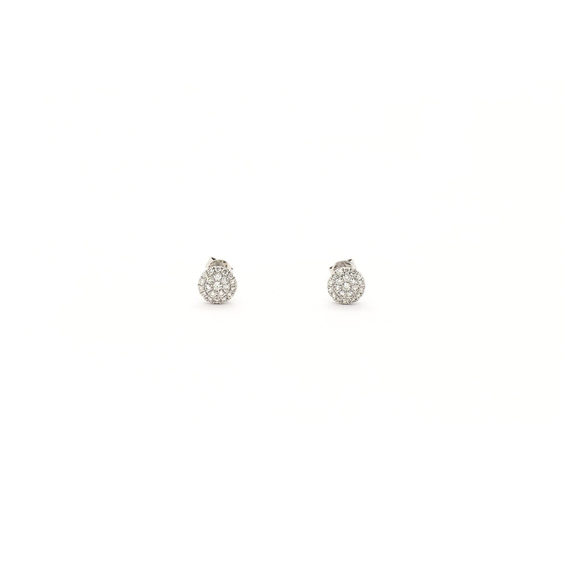 La combinación de diamantes brillantes redondos crea el impresionante brillo de estos pendientes. El cierre es a presión para mayor comodidad al usar esta impresionante joya.