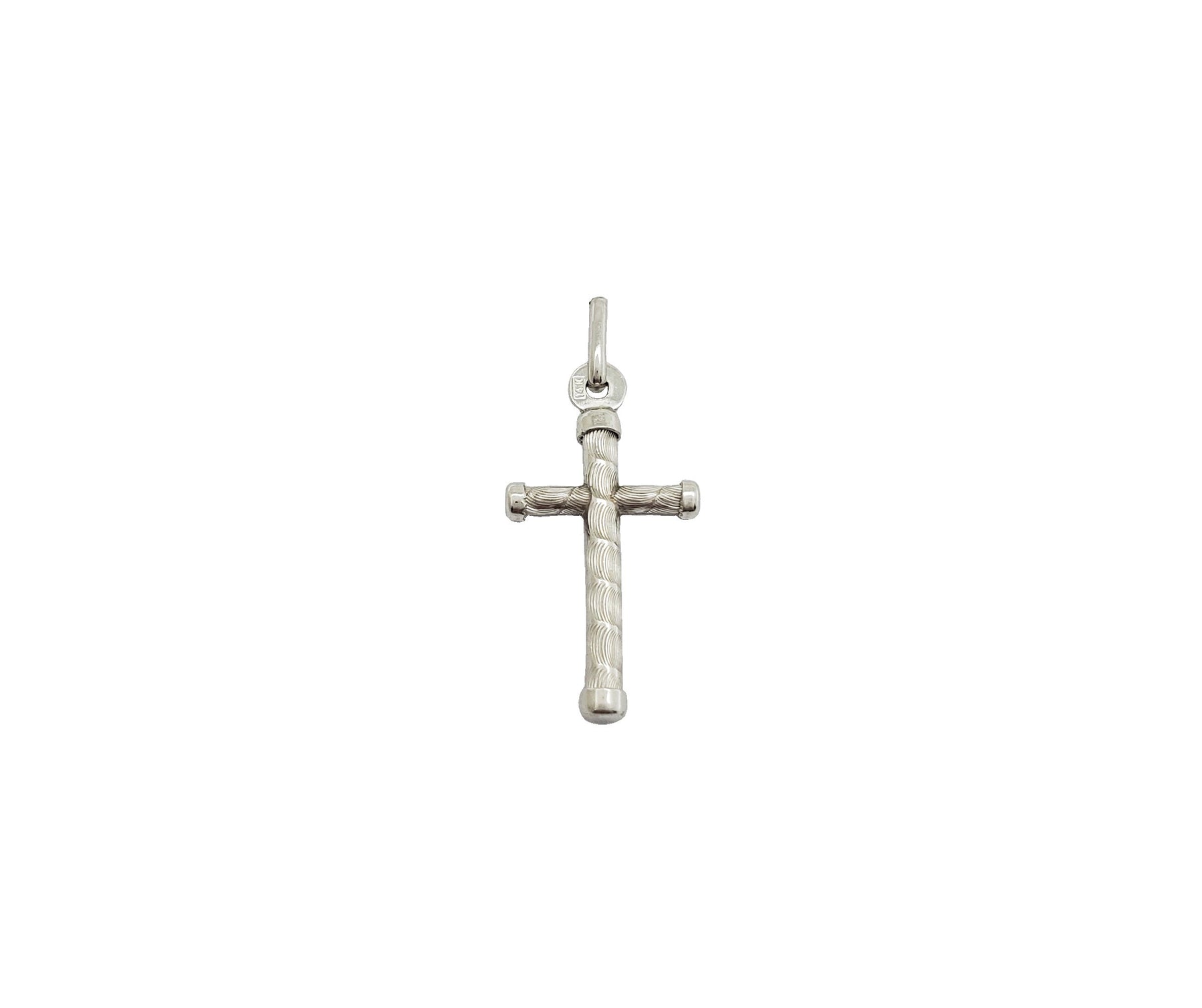 Colgante de cruz tubular con rayas florentinas (14 quilates)