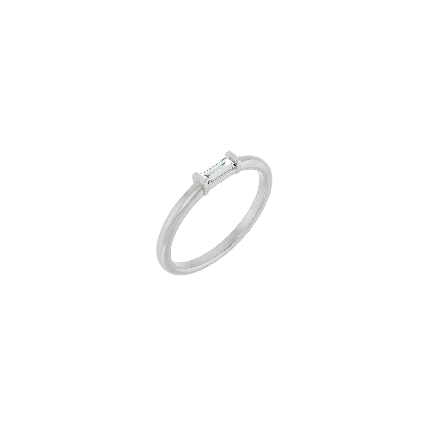 Natural Baguette Diamond Solitaire Ring (Silver) diagonal - Lucky Diamond - New York