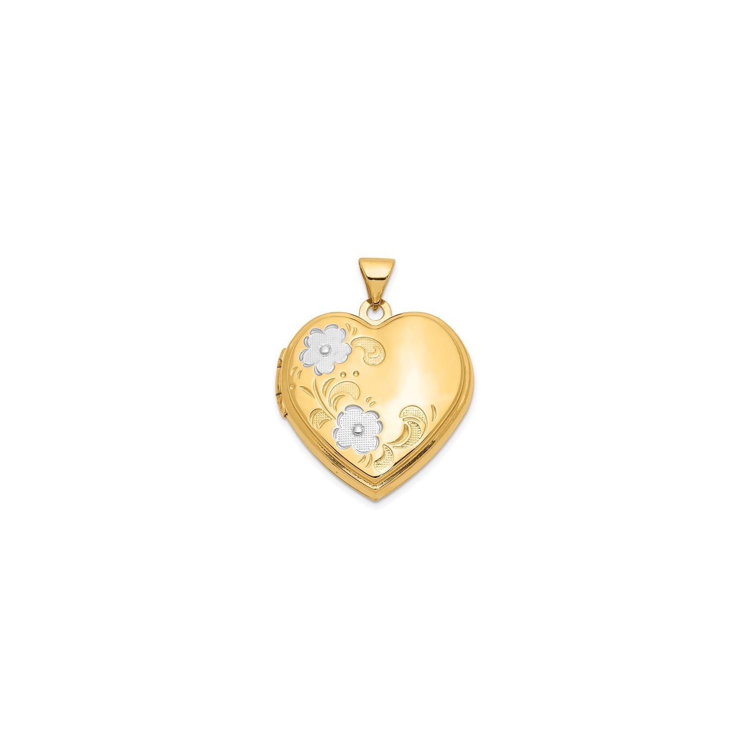 Medallón en forma de corazón con colgante de flor (14K)