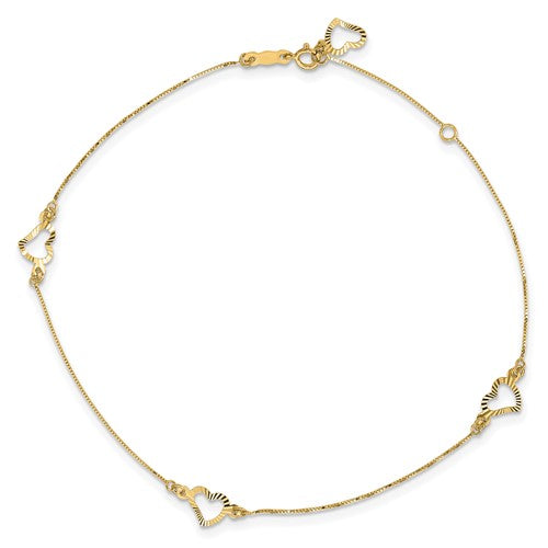 Pulsera de tobillo con triple corazón (14 quilates)