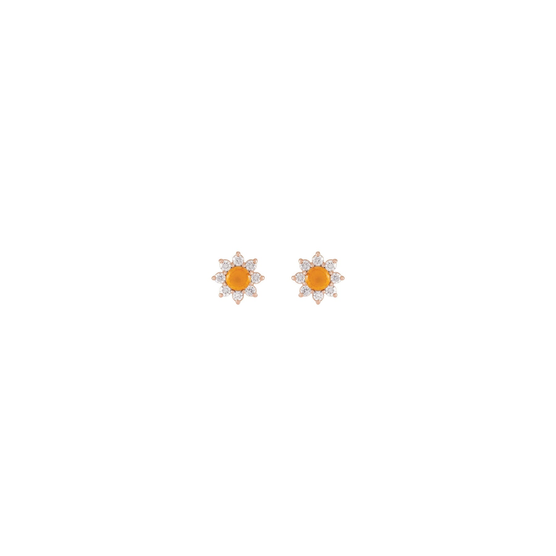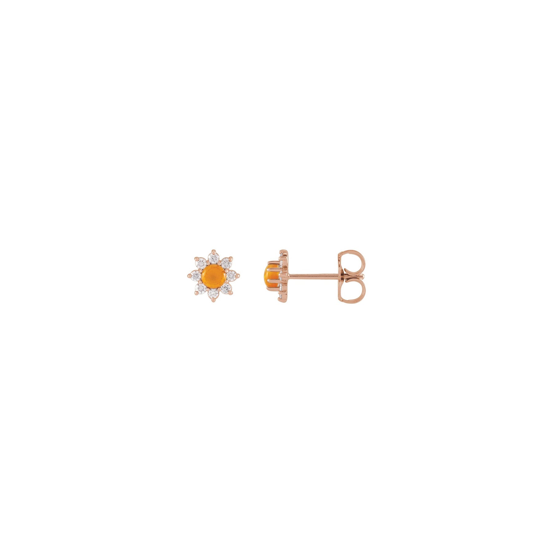 Citrine and Diamonds Flower Stud Earrings