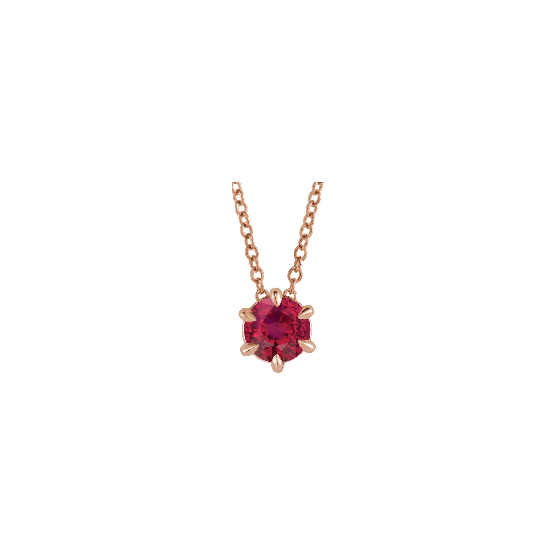 Natural Ruby Solitaire Claw Necklace (Rose 14K) front - Lucky Diamond - New York