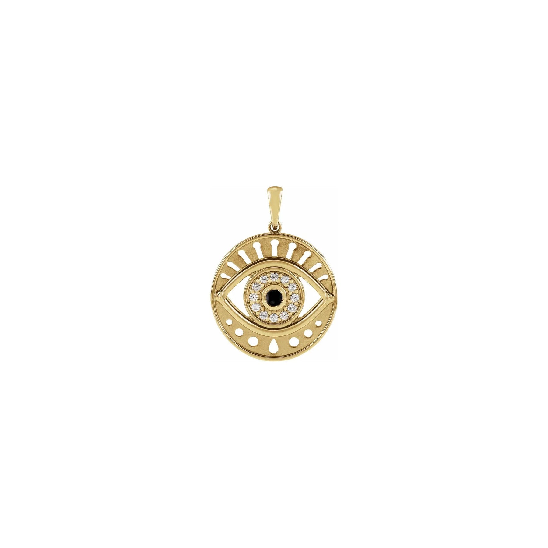Black Onyx and Diamonds Evil Eye Round Pendant yellow (14K) front - Lucky Diamond - New York